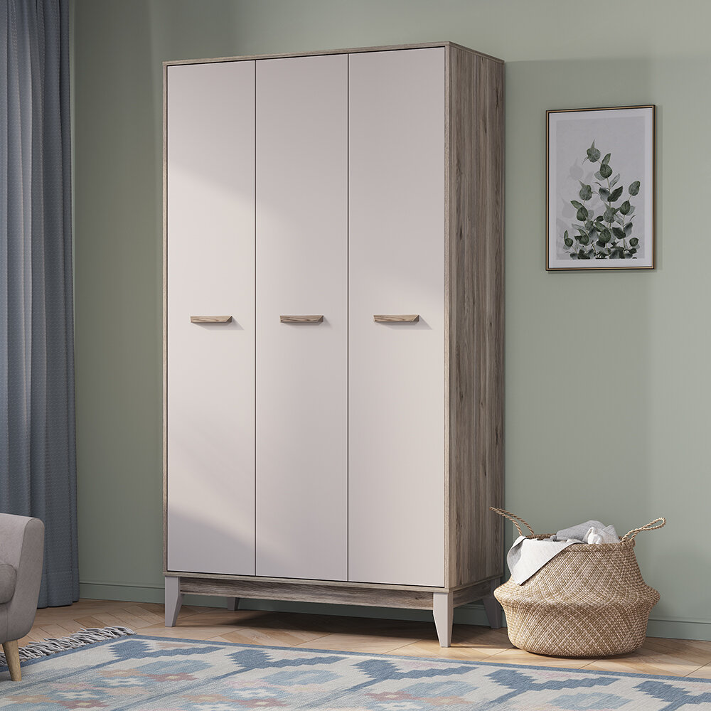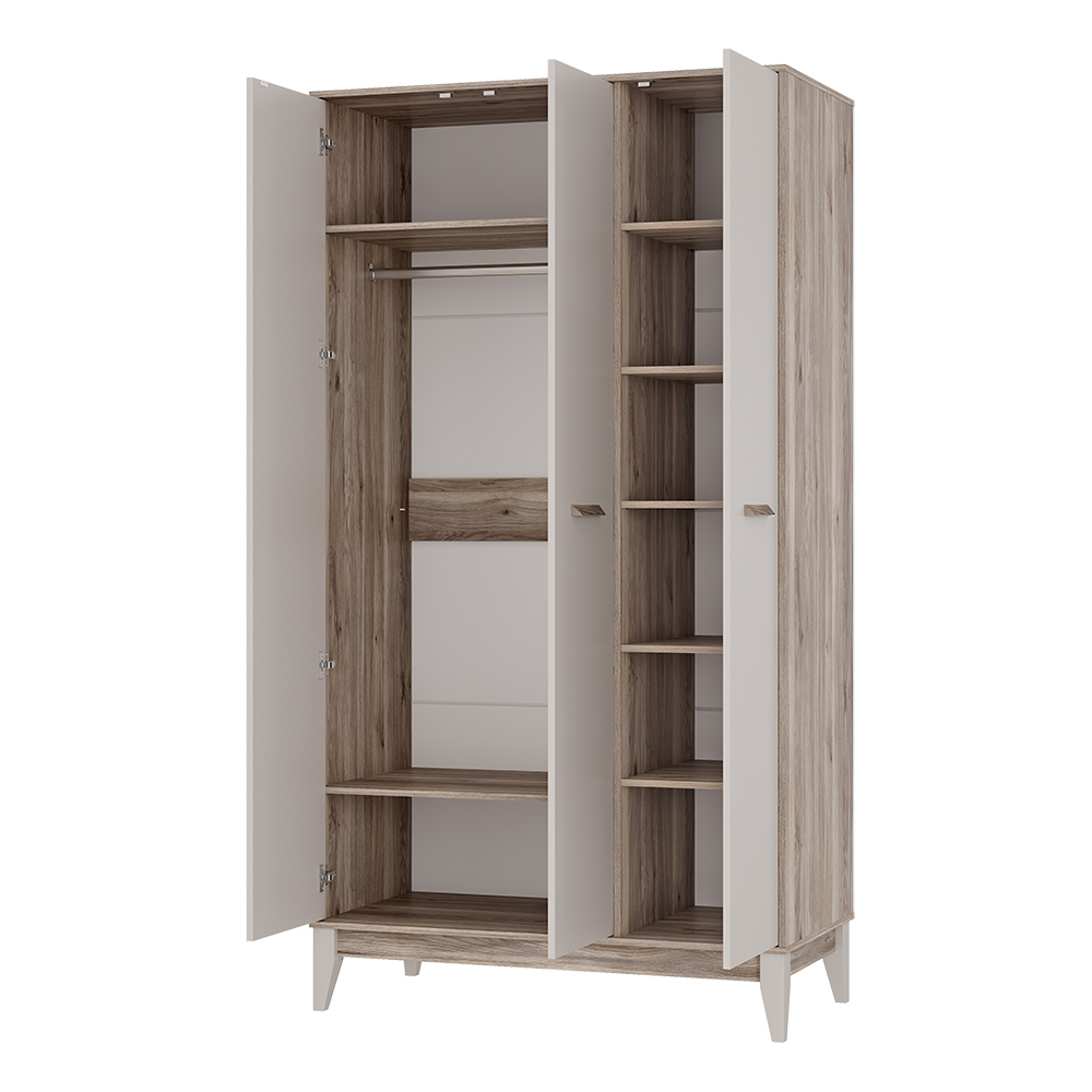 Шкаф для одежды и белья Скандика станет украшением вашего интерьера. За одной дверцей размещены две просторные открытые полки и секция с надежной хромированной штангой для вертикального хранения, а за другой – шесть открытых полок. Ручки повторяют текстуру корпуса «дуб смоки», а створки плотно фиксируются на магнитах.
