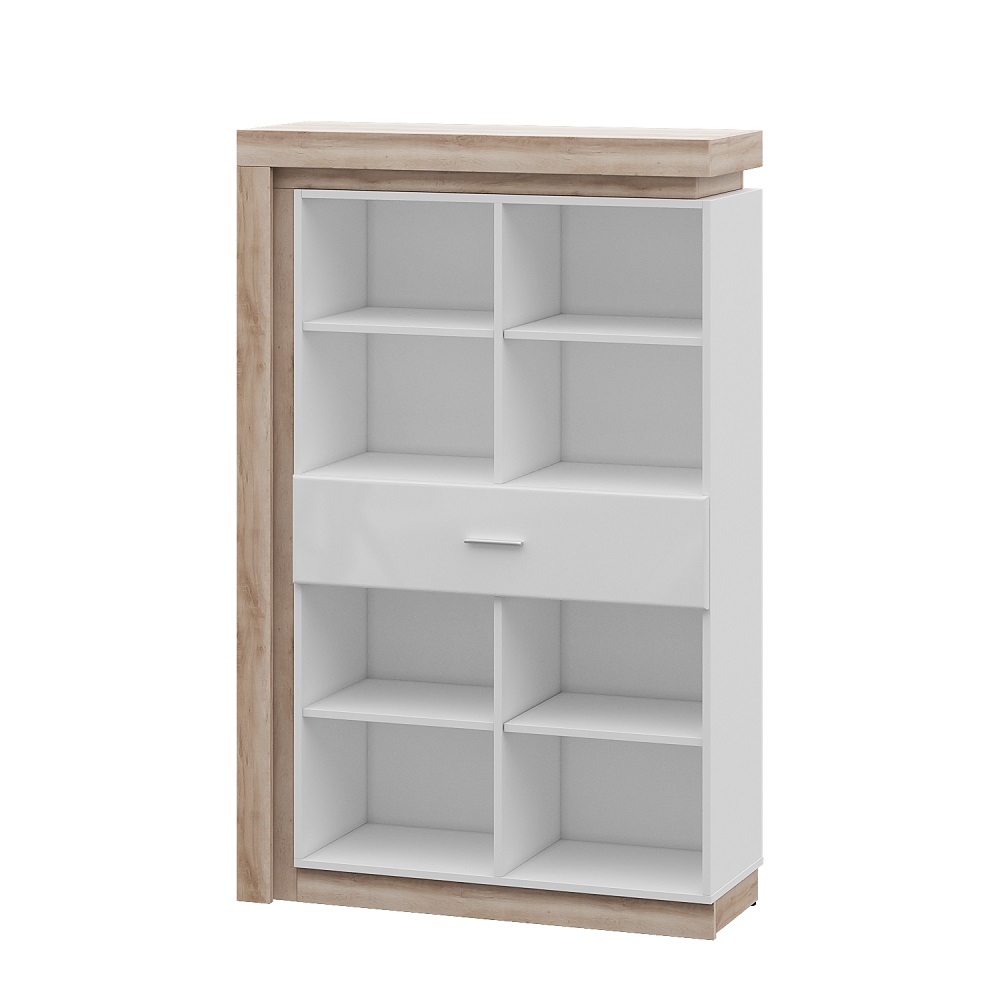 Шкаф Люмен 22 выступает украшением коллекции и благодаря оригинальной конструкции впишется в обстановку гостиной, спальни, детской и даже рабочего кабинета. Имеет выкатной ящик на шариковых направляющих. За глухими фасадами скрывается полка.