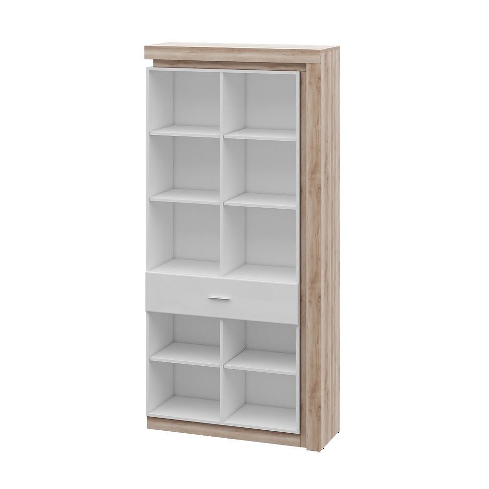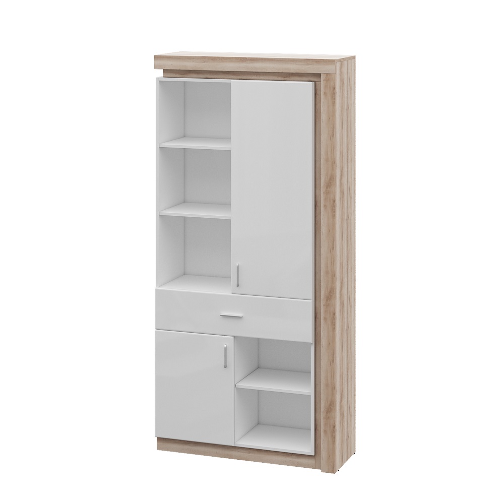 Высокий шкаф Люмен 23 выступает украшением коллекции и благодаря оригинальной конструкции впишется в обстановку гостиной, спальни, детской и даже рабочего кабинета. Имеет выкатной ящик на шариковых направляющих. За глухими фасадами скрывается полка.
