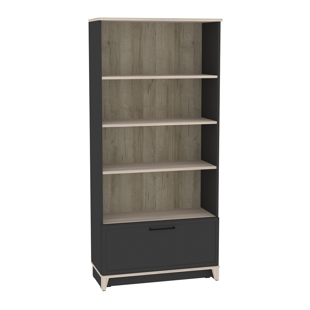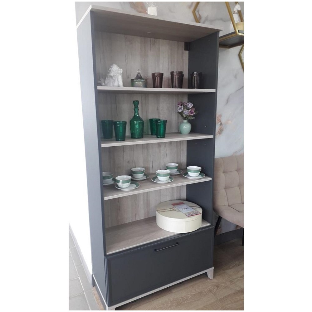Вместительный шкаф многоцелевого назначения с открытыми полками и закрытой нишей. Поможет организовать пространство гостиной и сэкономить пространство. На широких открытых полках хватит места для всей Вашей литературы, фоторамок и комнатных растений, предметов декора и памятных вещиц. Закрытая секция снизу пригодится для коробок с вещами и всего того, что нужно спрятать от лишних глаз.