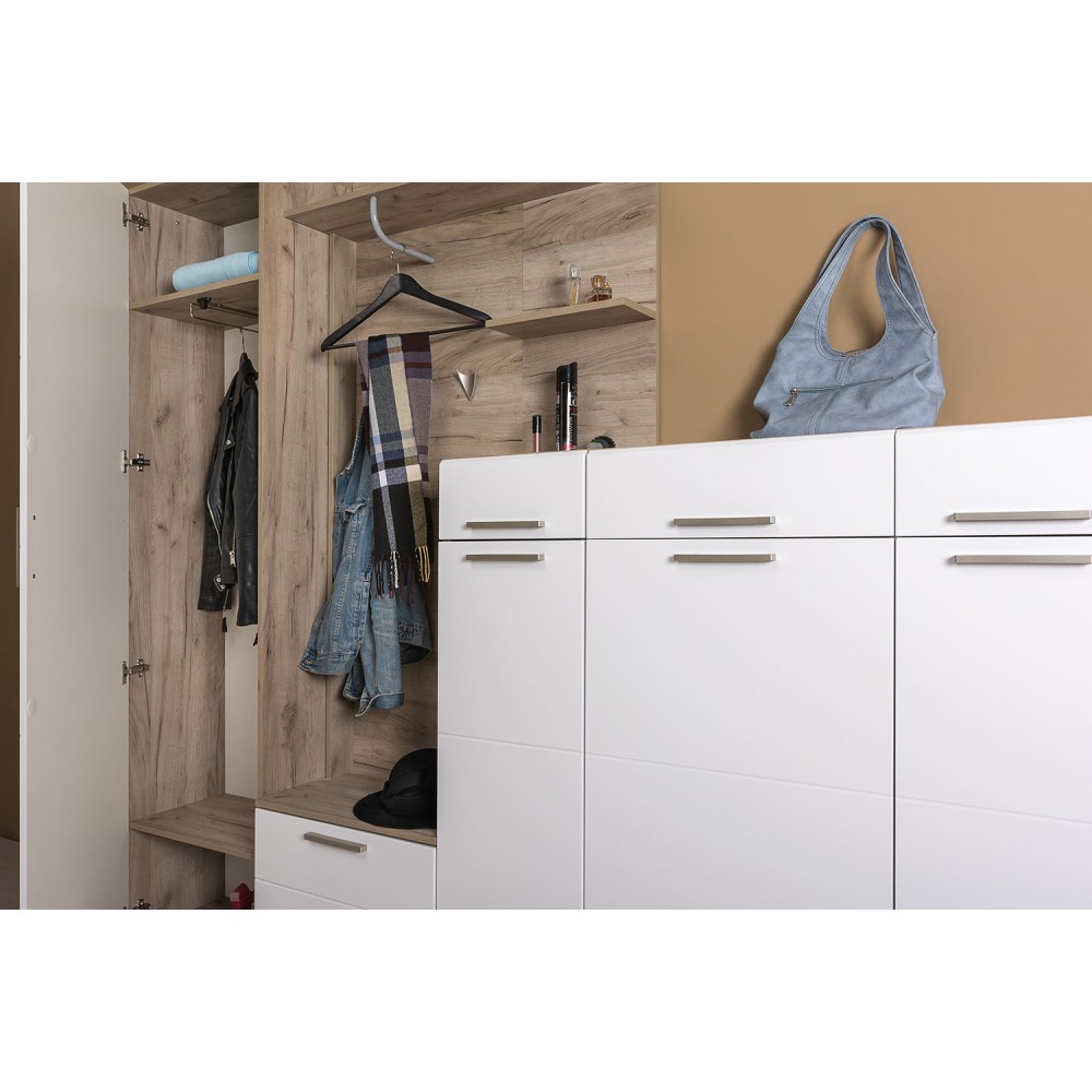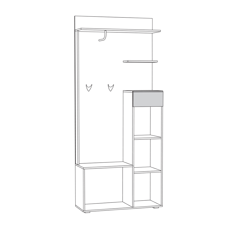 Стильная и компактная прихожая Лайн – это оптимальное сочетание открытых и закрытых зон для хранения верхней одежды, головных уборов, обуви и аксессуаров.
