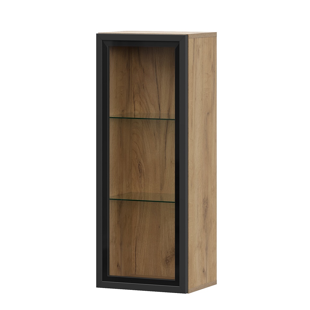 Модульная система "Милан" Шкаф навесной (со стеклом) Дуб Золотой/Черный