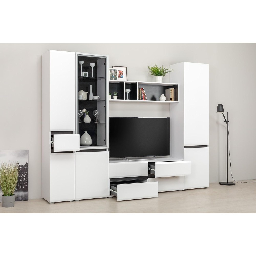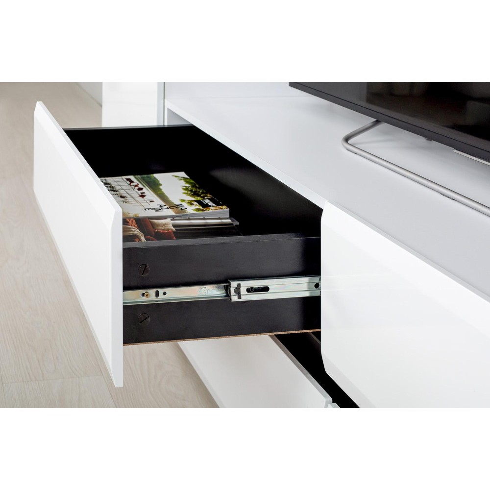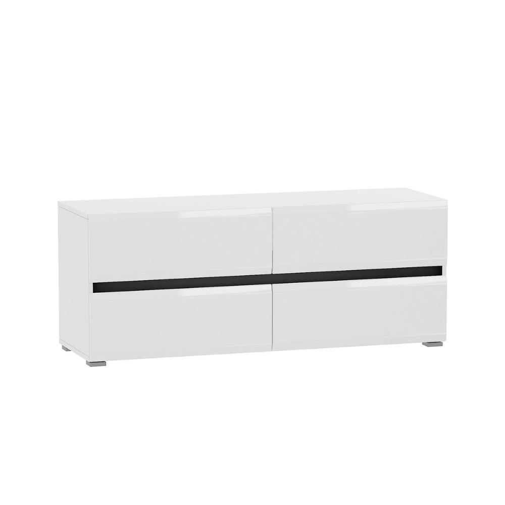 ТВ-тумба «Сидней» станет практичным и стильным дополнением к интерьеру вашей современной гостиной или спальни. Она оборудована четырьмя выдвижными ящиками, пары которых разделены горизонтальными чёрными вставками. Благодаря невысоким и устойчивым опорам модель будет надёжно стоять на своём месте.