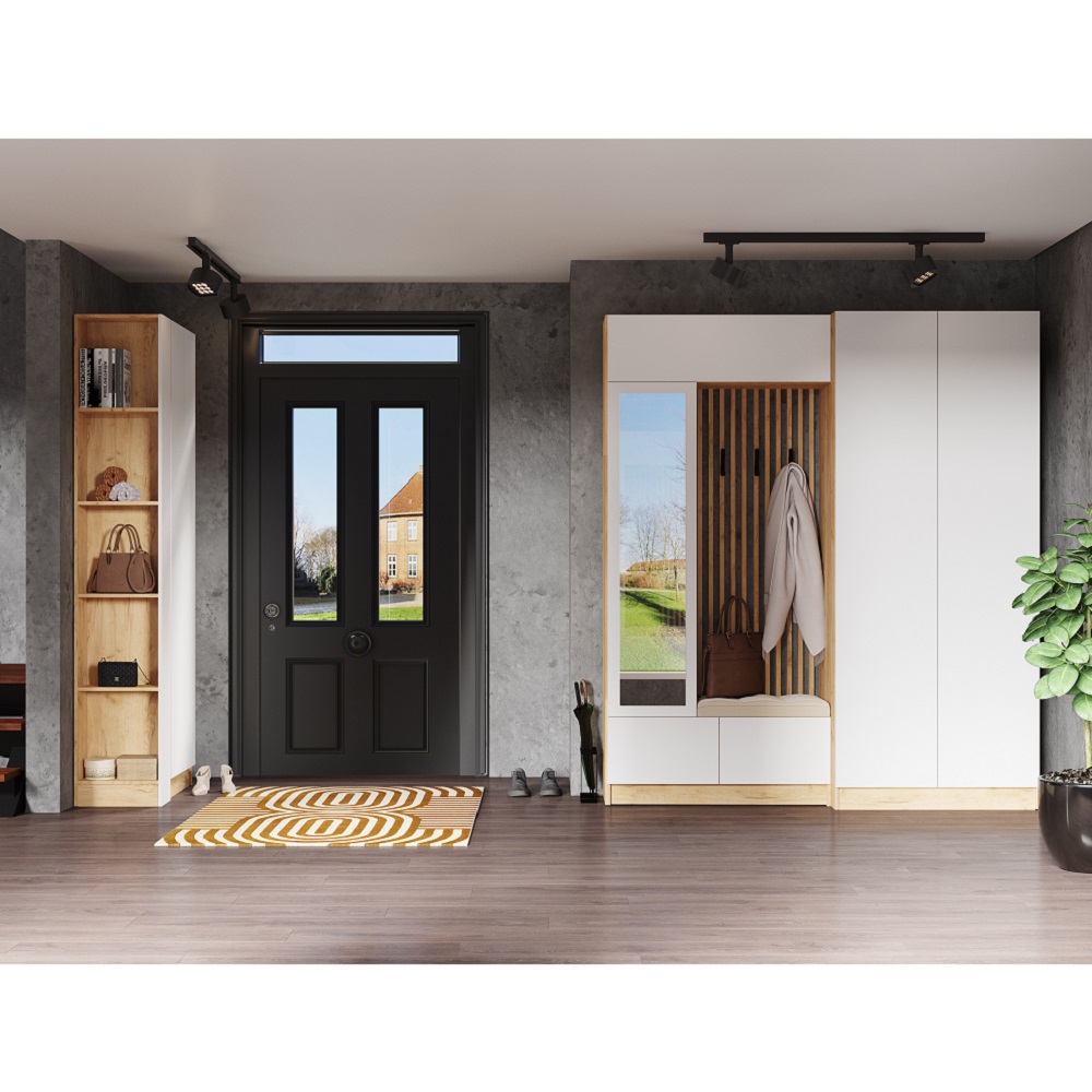 Стеллаж Руэлла смотрится изысканно как отдельный модуль, так и дополнение к шкафам из данной коллекции. На открытых полках Вы разместите декоративные предметы интерьера, аксессуары и нужные мелочи в прихожей, спальне или гостиной.