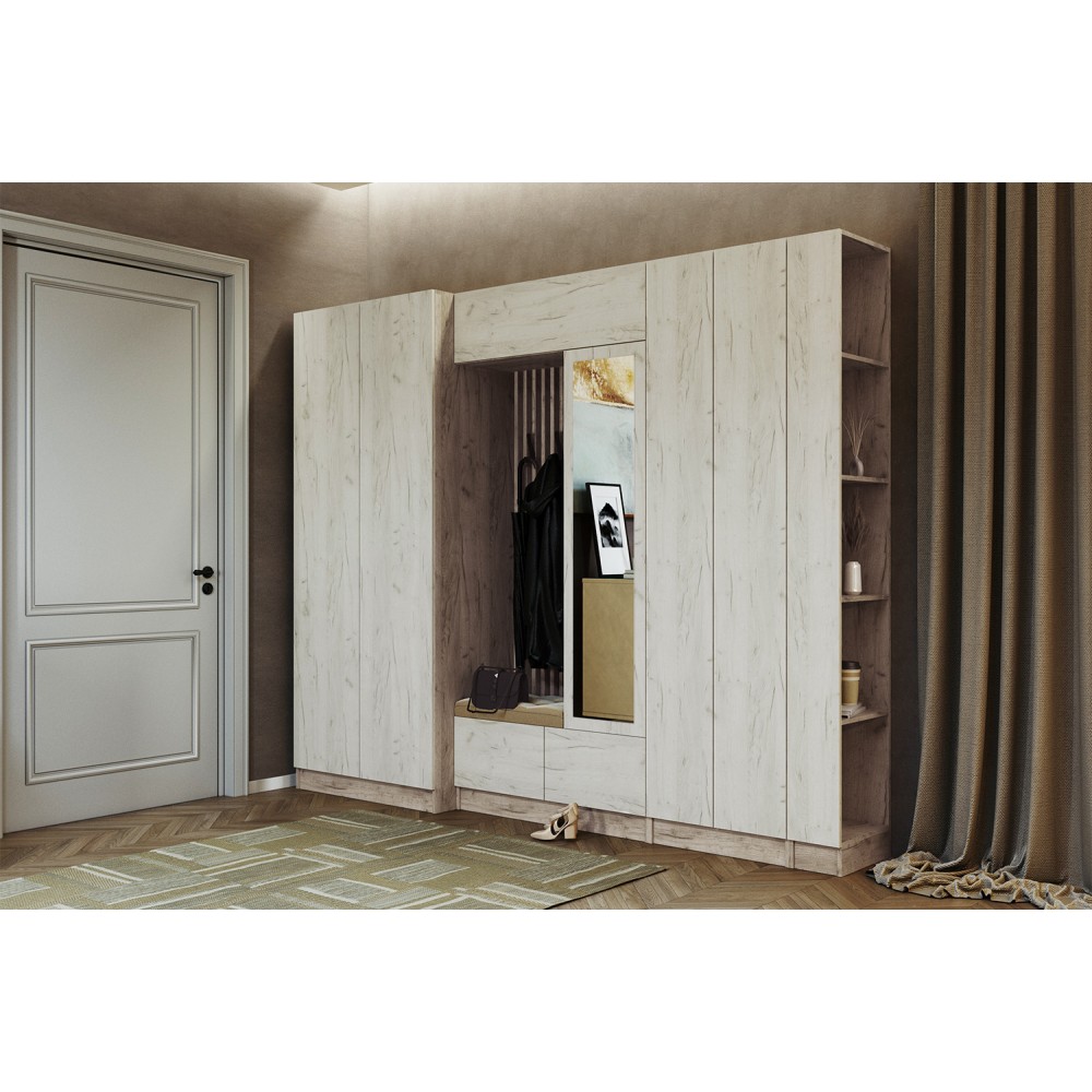 Стеллаж Руэлла смотрится изысканно как отдельный модуль, так и дополнение к шкафам из данной коллекции. На открытых полках Вы разместите декоративные предметы интерьера, аксессуары и нужные мелочи в прихожей, спальне или гостиной.