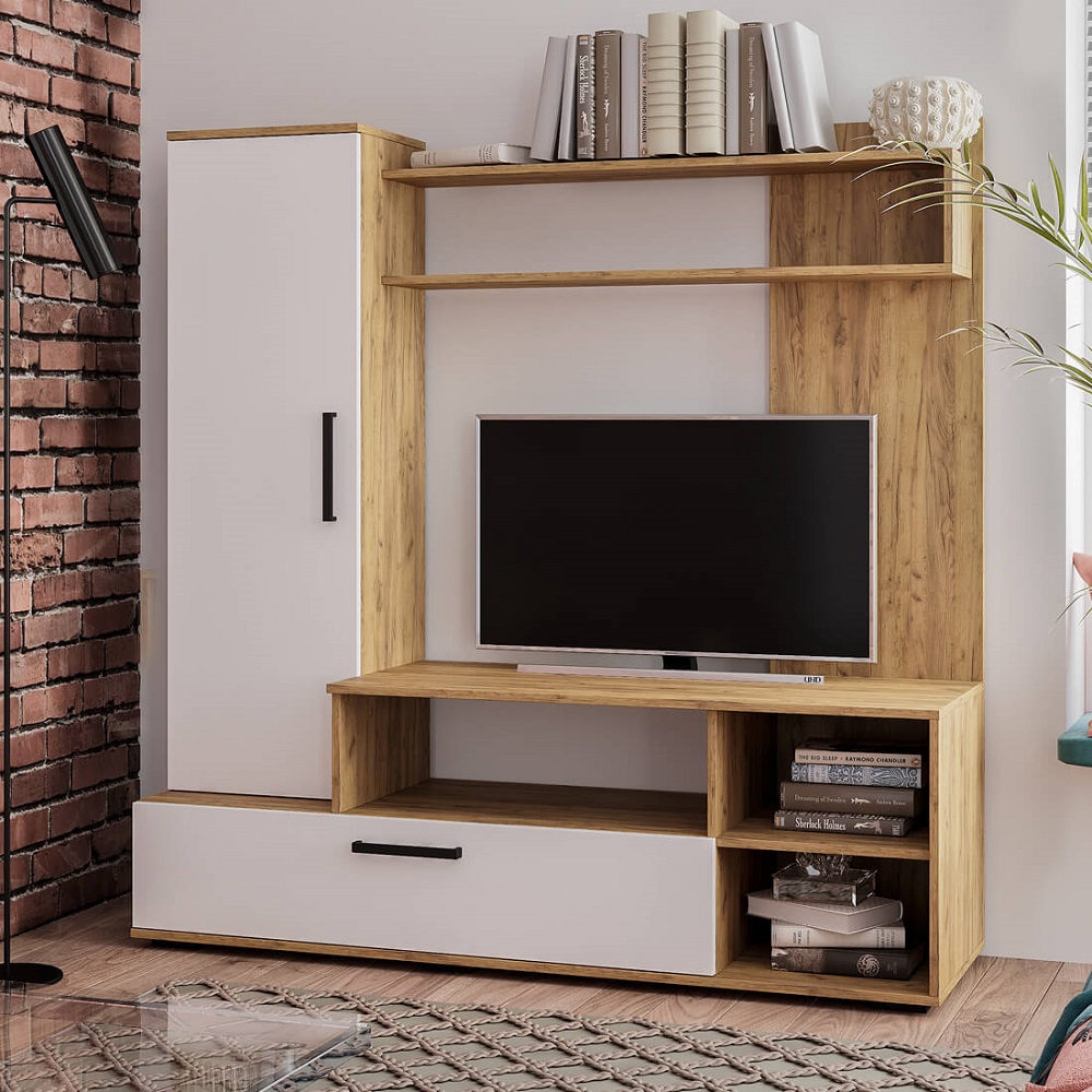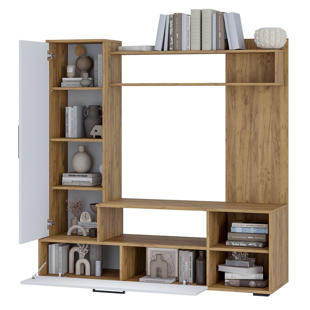 Мини-гостиная Евро-2 – отличный выбор для небольшой комнаты или квартиры-студии. Конструкция стенки обеспечит хранение всех необходимых в гостиной вещей: телевизора и сопутствующей техники, книг и журналов, коробок с вещами и предметов декора.