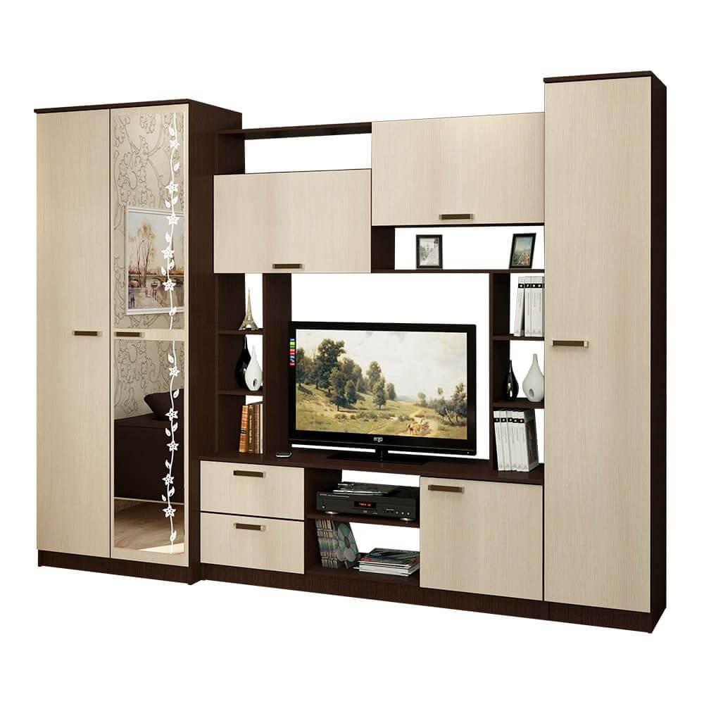 Привлекает универсальность в мебели? Нас тоже! Поэтому предлагаем гостиную «Флора» Венге!