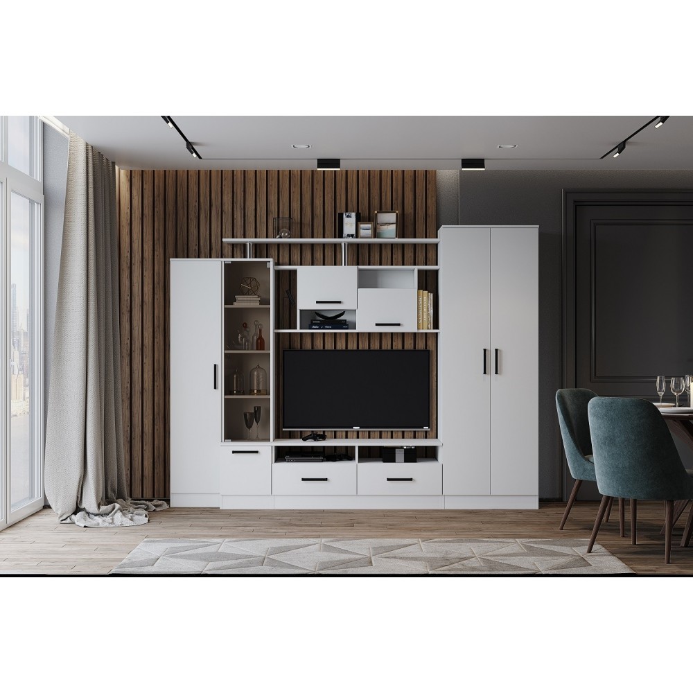 Гостиная Оскар-5 обладает отличной функциональностью и комфортом при ежедневной эксплуатации. Эти необходимые свойства обеспечивает наличие нескольких вместительных секций, позволяющих с удобством разместить все нужные вещи. Продуманное цветовое решение мебели гарантирует ее совместимость с практически любым современным интерьером.