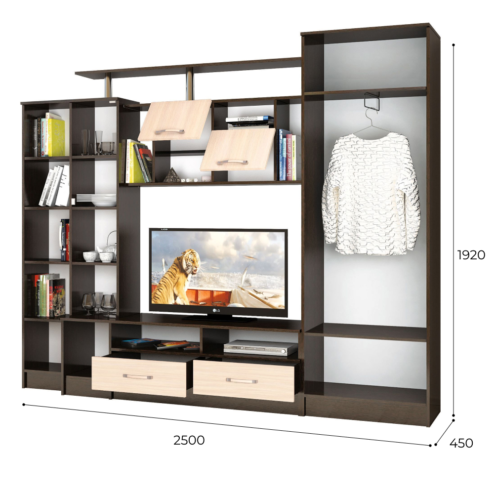 ГостинаяОскар 5обладает отличной функциональностью и комфортом при ежедневной эксплуатации. Эти необходимые свойства обеспечивает наличие нескольких вместительных секций, позволяющих с удобством разместить все нужные вещи. Продуманное цветовое решение мебели гарантирует ее совместимость с практически любым современным интерьером.