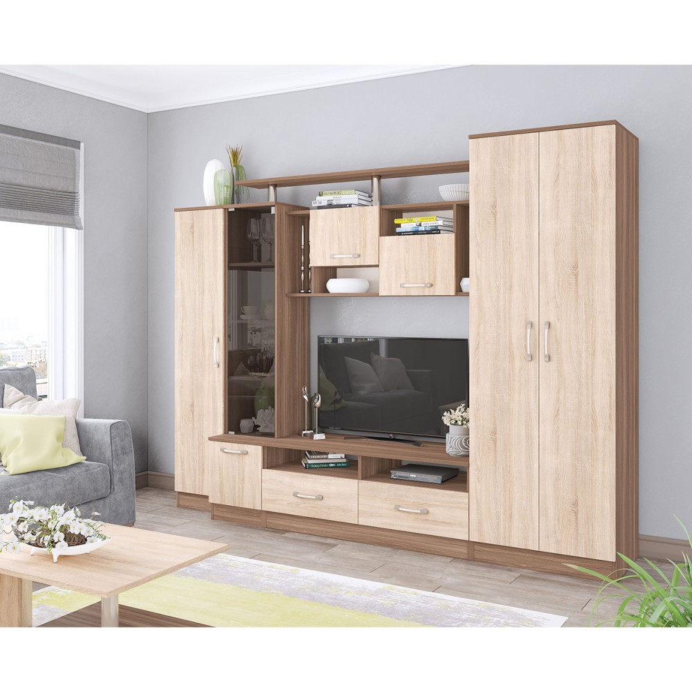 ГостинаяОскар 5обладает отличной функциональностью и комфортом при ежедневной эксплуатации. Эти необходимые свойства обеспечивает наличие нескольких вместительных секций, позволяющих с удобством разместить все нужные вещи. Продуманное цветовое решение мебели гарантирует ее совместимость с практически любым современным интерьером.