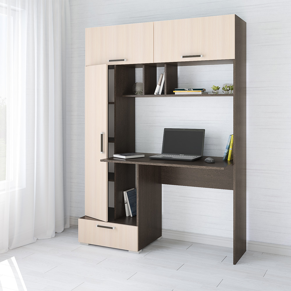 Компьютерный стол Квартет-11 отличается от аналогов увеличенной вместимостью. Модель совмещаетпросторное рабочее место и место для хранения всех необходимых в работе и учебе принадлежностей: книг, канцелярии и личных вещей.Всем вещам хватит места, и храниться они будут в полном порядке. Приятный декор, представленный сочетанием древесных пород, впишется в любой современный интерьер и добавит атмосферности.