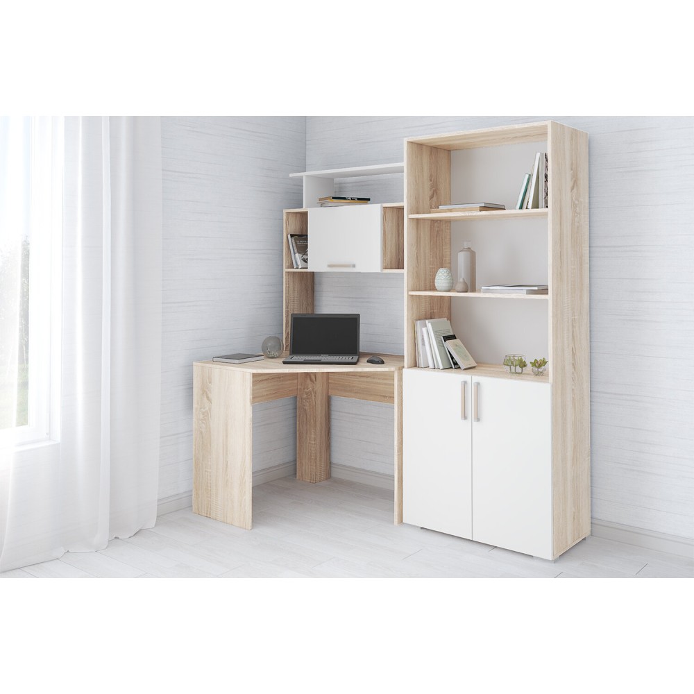 Стол компьютерный Квартет-12 со стеллажом, дуб сонома/белый