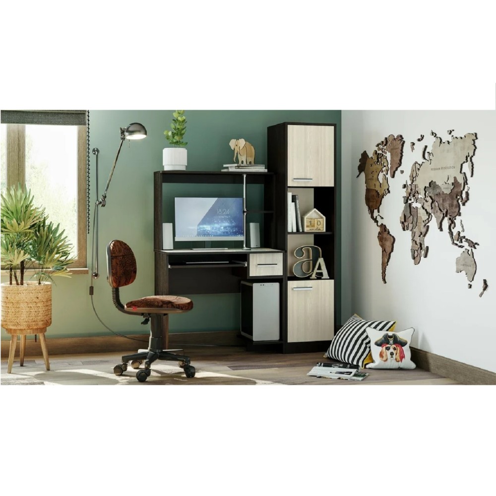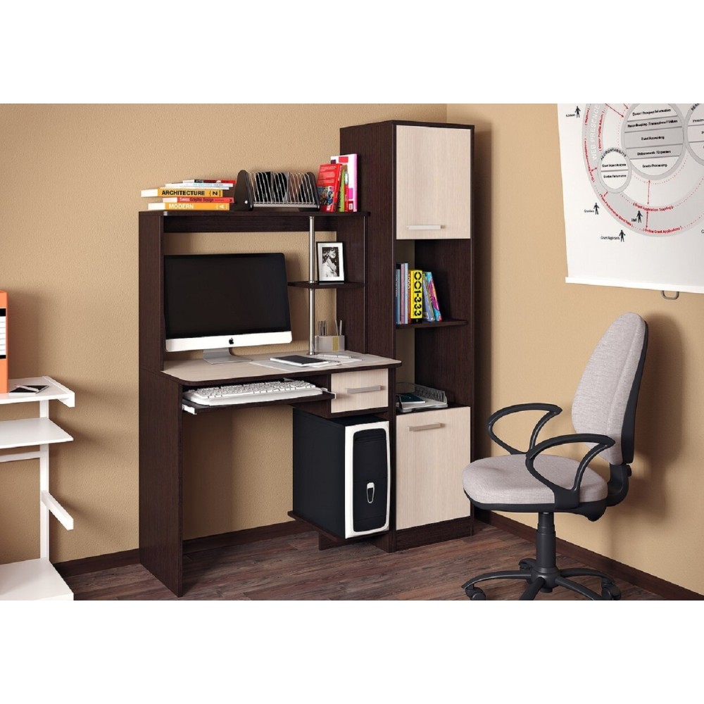 Компьютерный стол Дебют выполнен в классическом декоре венге/дуб атланта и оборудован небольшим ящиком, выдвижной полкой под клавиатуру, полкой под процессор и открытой надстройкой. Компактные размеры модуля позволят Вам организовать рабочее место даже в малогабаритном помещении, используя при этом минимум пространства. Размеры пенала - 40х168х40 см, Вы можете установить его вплотную к столу или как отдельный элемент.