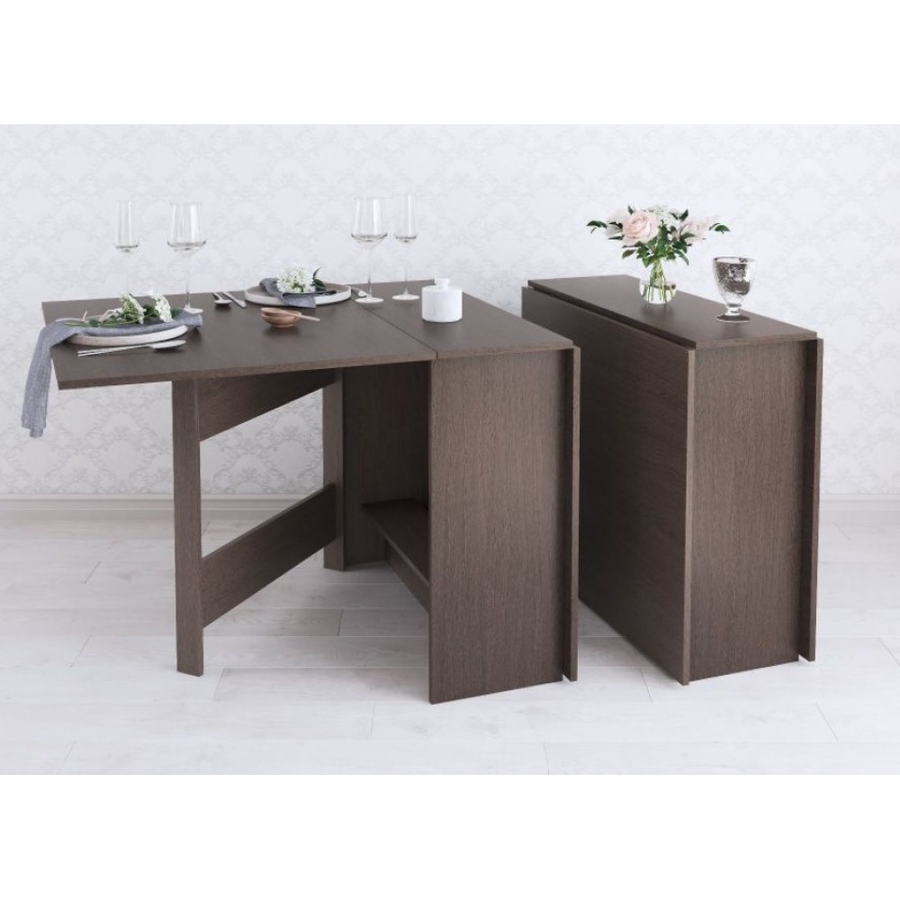 Раскладной стол для кухни - не прихоть, а скорей необходимость в малогабаритках и квартирах-студиях, где каждый метр важно использовать рационально. Данная модель имеет 3 положения: полностью сложенный, разложенный наполовину и полностью разложенный. Модель установлена на пластиковые подпятники, предохраняющие напольные покрытия от повреждения, а значит Вам не нужно бояться поцарапать пол.