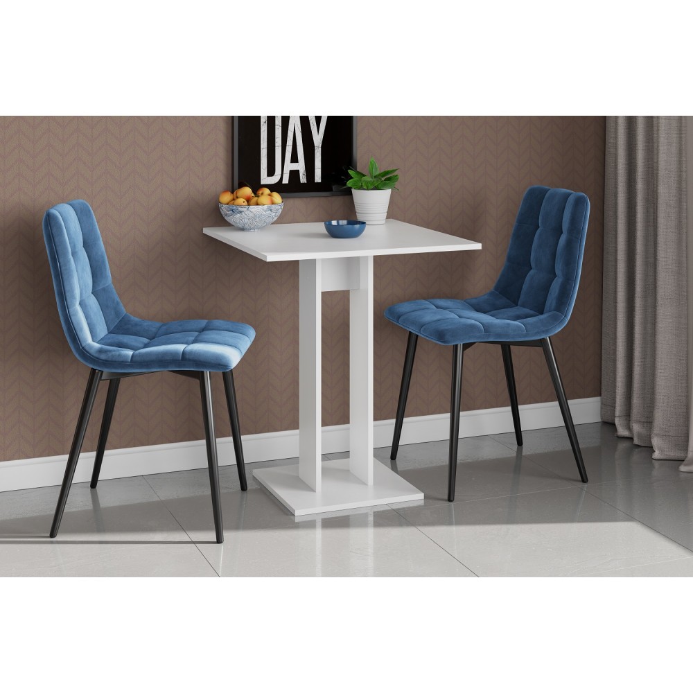 Стол изготовлен из высококачественных материалов, обеспечивающих его прочность и долговечность. Каркас и столешница выполнены из белого текстурного ЛДСП, что делает изделие устойчивым к механическим повреждениям и воздействию влаги.