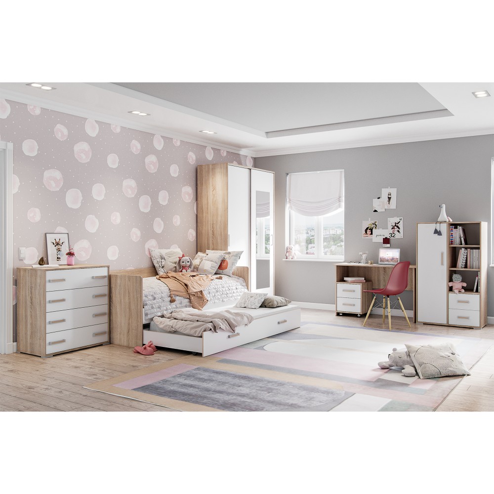 Если Вы ищете простой и недорогой стол для организации рабочего уголка ребенка, обратите внимание на прямой письменный стол Бланка. Универсальная конструкция, декор с древеснойтекстурой теплого оттенка и компактный размер позволят Вам установить модель в любом по площади и стилю помещении. Дополните стол выкатной тумбой на колесиках, навесной секцией или надстройкой с полками для создания полноценного рабочего пространства в детской.
