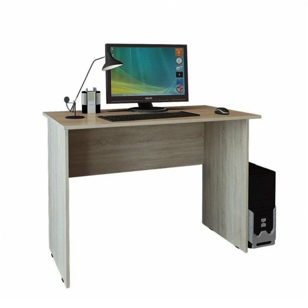 Минималистичный письменный стол Практик 2 - оптимальное решение для создания рабочего уголка в небольшом помещении. Прямые формы и отсутствие деталей позволит Вам расположить модель не только у стены, но и у окна или в центре комнаты при зонировании пространства. На столешнице поместятся настольная лампа, компьютер и канцелярские принадлежности.