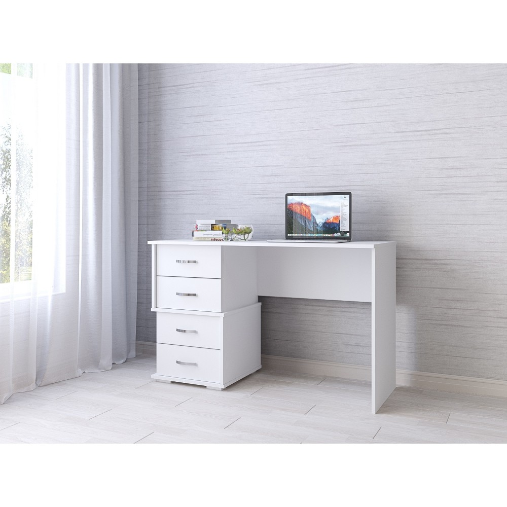 Ищете недорогой письменный стол необычной формы? Обратите внимание на модель Сити-2. Универсальный белый цвет и оригинальная конструкция тумбы с ящиками делают модель хитом на мебельном рынке. Вы сможете организовать не только функциональное и комфортное для ежедневной работы, но и визуально привлекательное рабочее место. Четыре выдвижных ящика оснащены роликовыми направляющими. Ручки пластиковые цвета "металлик".