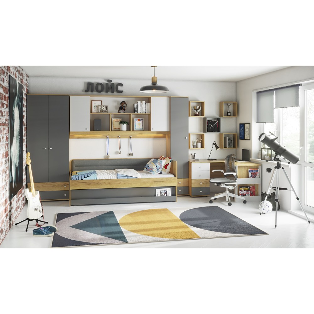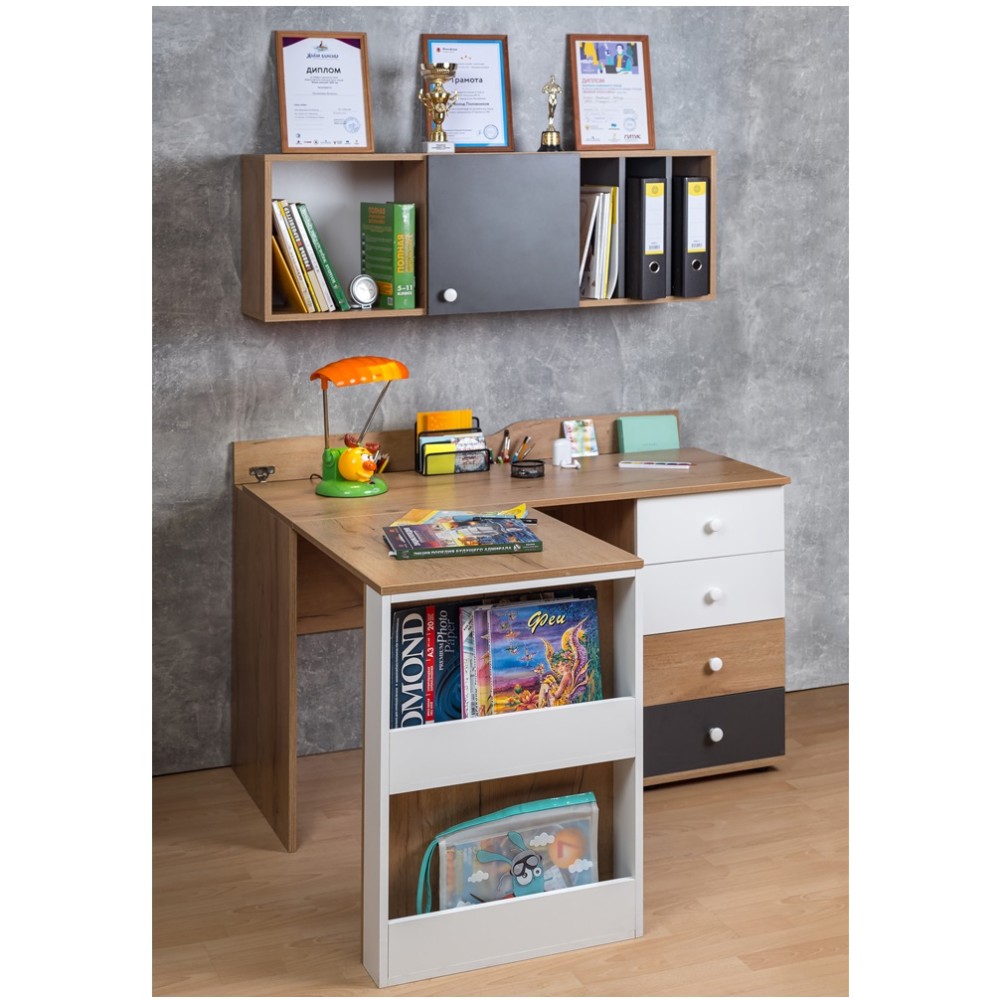 В небольших по площади детских каждый метр важно использовать рационально. Организовать рабочее место ребенка, сэкономив при этом пространство комнаты, становится возможным с приставным столом из коллекции Лойс. Стол устанавливается с любой от письменного стола стороны. Имеет двухъярусны карман, который удобно использовать для хранения книг, канцелярии и других вещей, которые нужно иметь под рукой.