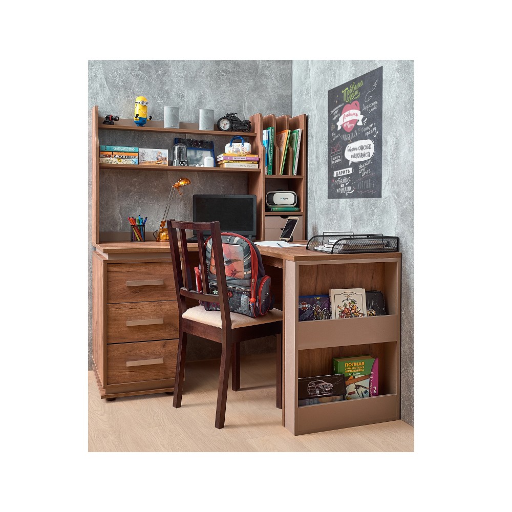 Увеличить площадь рабочего места для размещения книг, рабочих тетрадей и техники можно используя дополнительную консоль к модулюNature 84 Cтол письменный. С внешней стороны приставного стола имеется дополнительная ниша для хранения. Угловой стол можно установить с любой стороны письменного стола, образуя тот угол, который подразумевает планировка комнаты. Ширину стола можно увеличить или уменьшить на 150 мм с шагом в 1 мм.