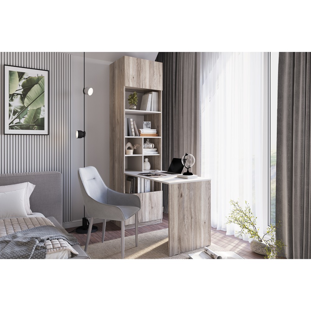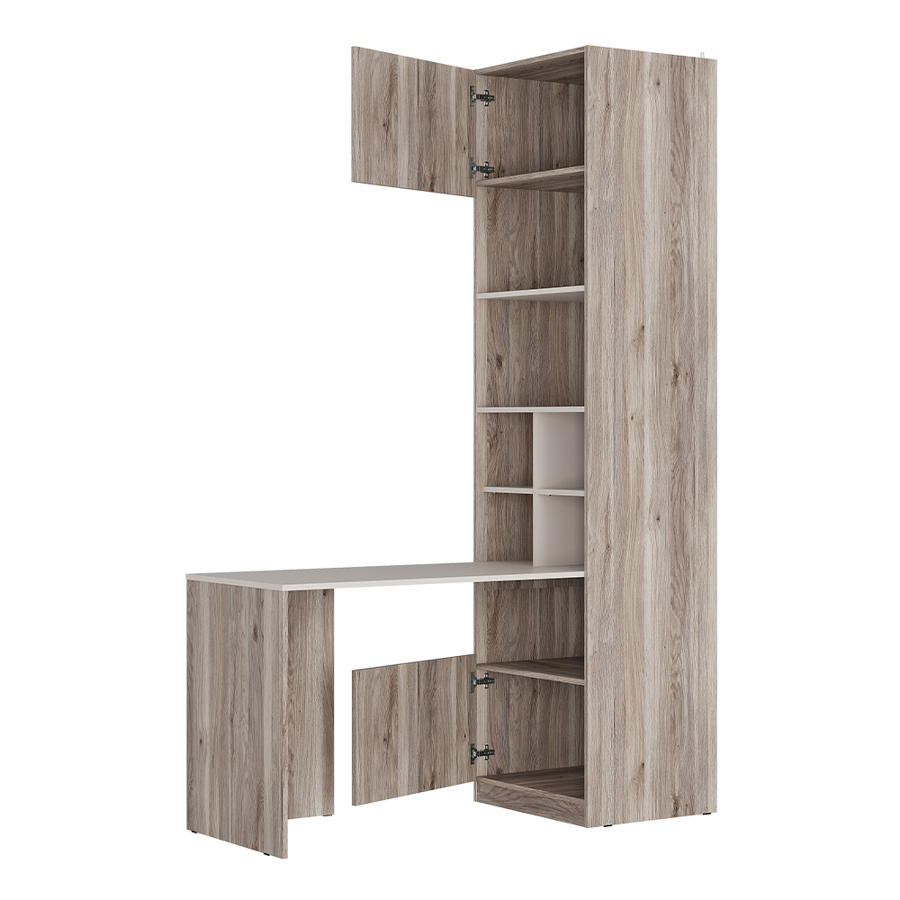 Стол-шкаф Урбан СШ-01 представляет собой стильную минималистичную модель, идеальную для учебы и работы. Главной особенностью этого стола является встроенный вертикальный блок с полками, предназначенными для хранения книг, документов и техники.