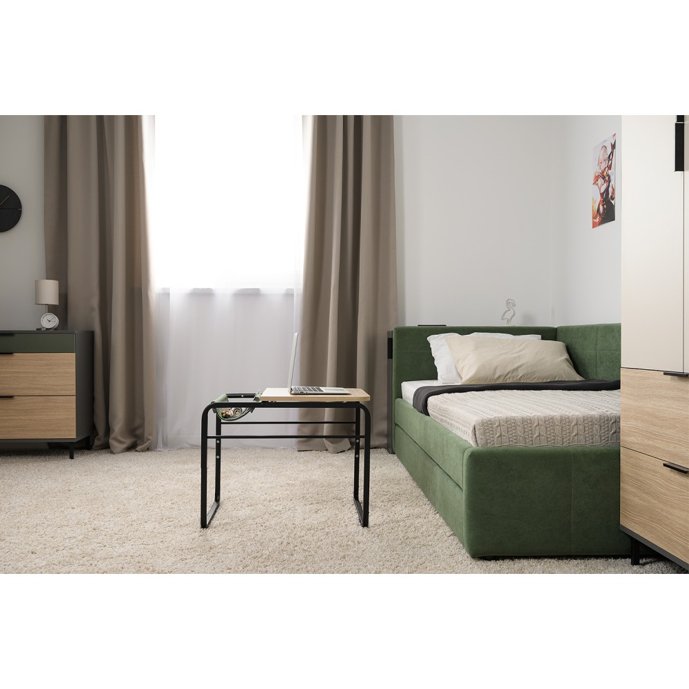 Журнальный столик Марвэл - это стильный и функциональный элемент мебели, который выполнен из качественных материалов, обеспечивающих долговечность и устойчивость. Удобная тканевая полка позволит эффективно использовать пространство для хранения мелочей - книг, журналов, пульта от телевизора и других необходимых предметов.