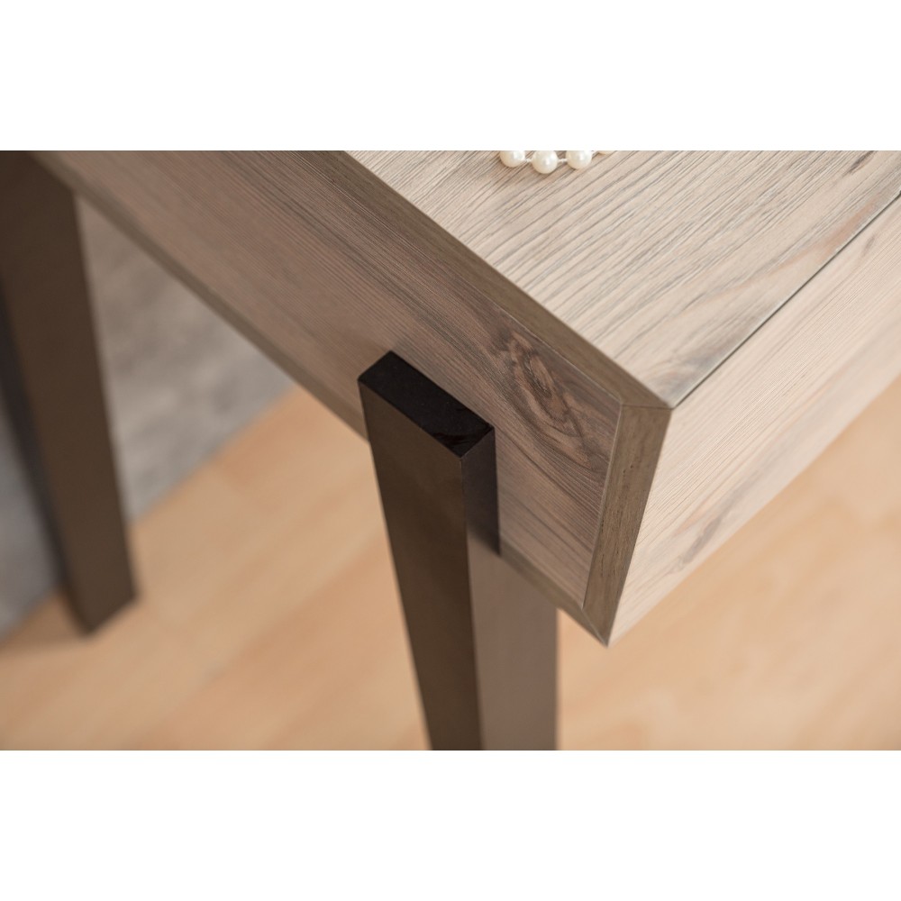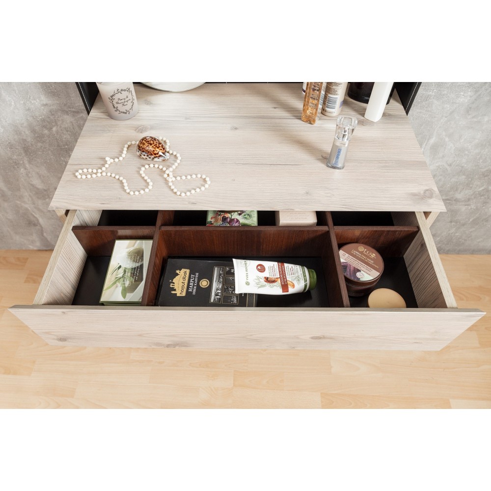 Туалетный столик просто необходим красивой женщине, которая привыкла за собой ухаживать не бегом, в ванной или прихожей, а обстоятельно. Стильный и функциональный он не займет много места в маленькой спальне. Разместите его в спальне у окна, и лучший естественный свет вам обеспечен. Ящики оснащены шариковыми направляющими, что обеспечивает их движению плавных ход и минимальный люфт.