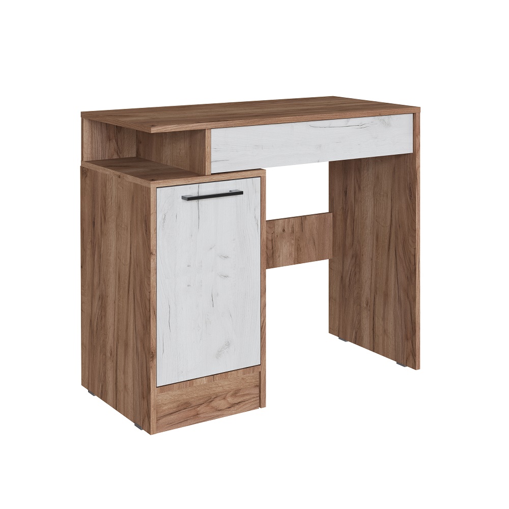 Туалетный столик Вегас понравится тем, кто хочет организовать уголок красоты в современной спальне. Стол оснащен выдвижным ящиком, который пригодится для хранения косметики и аксессуаров, а также тумбой, в которой легко разместить средства по уходу за собой.