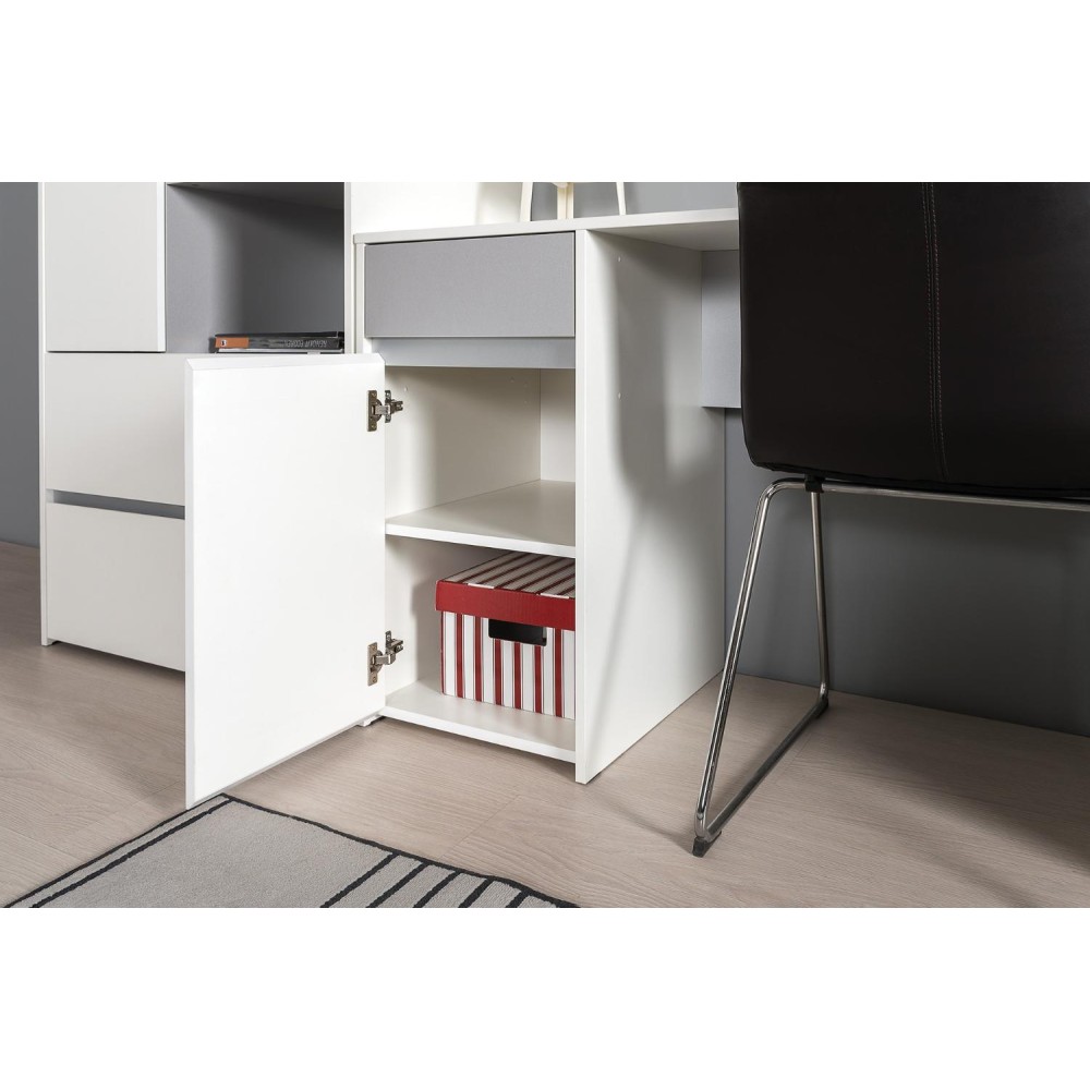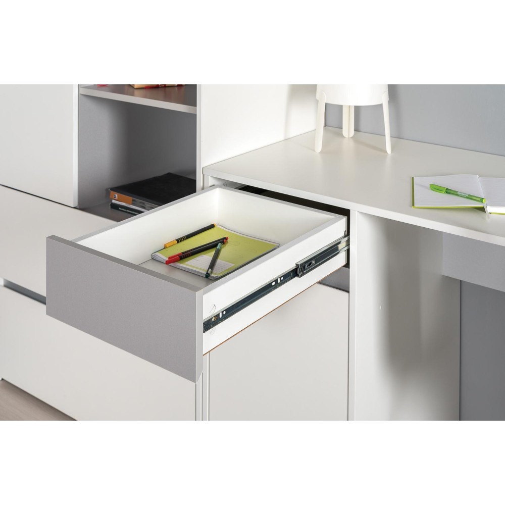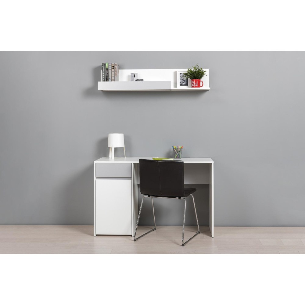 Изготовлен стол из ЛДСП, прочного и долговечного материала, который гарантирует долгий срок службы изделия. Белый PE шагрень и стальной серый цвета делают стол стильным и современным.