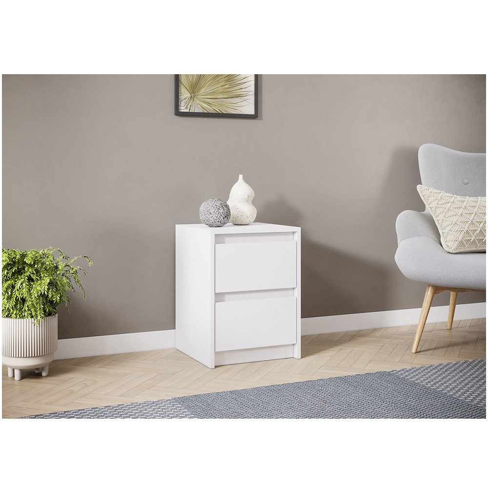 Минималистичная тумба с ящиками. Может быть установлена в спальне в качестве прикроватной тумбы, в домашнем офисе рядом с письменным или компьютерным столом.