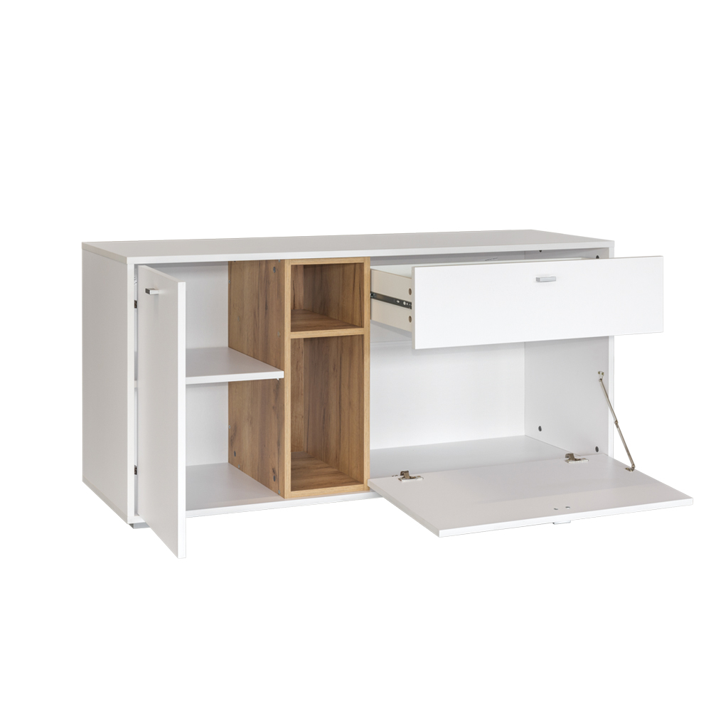 Тумба Бэль — это стильный и функциональный элемент вашего интерьера. Фасад белого цвета премиум придаёт ей изысканность и элегантность, а корпус цвета дуб крафт золотой добавляет теплоты и уюта. Изготовлена из высококачественных материалов: фасады из ЛДСП с глянцевым покрытием, корпус также из ЛДСП.