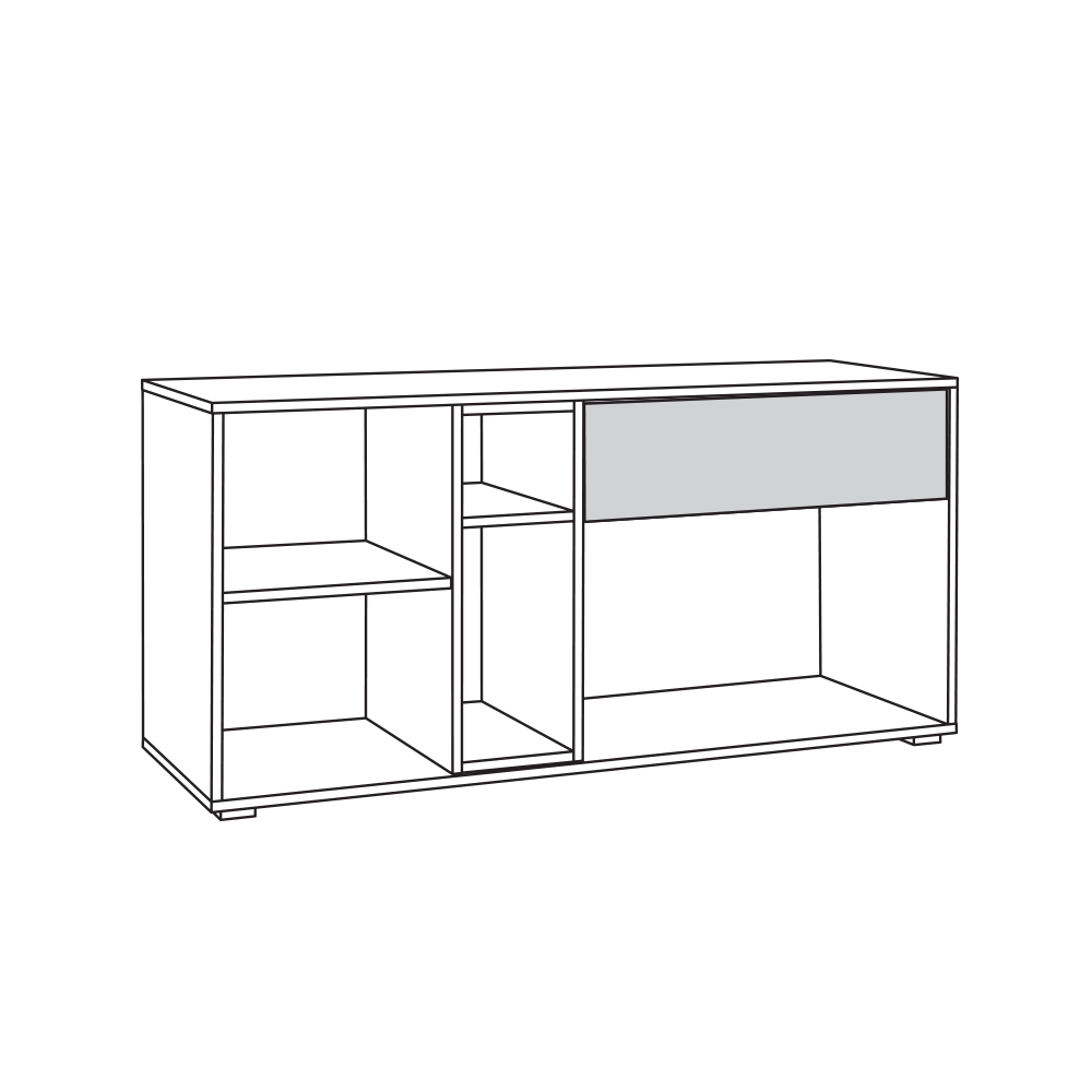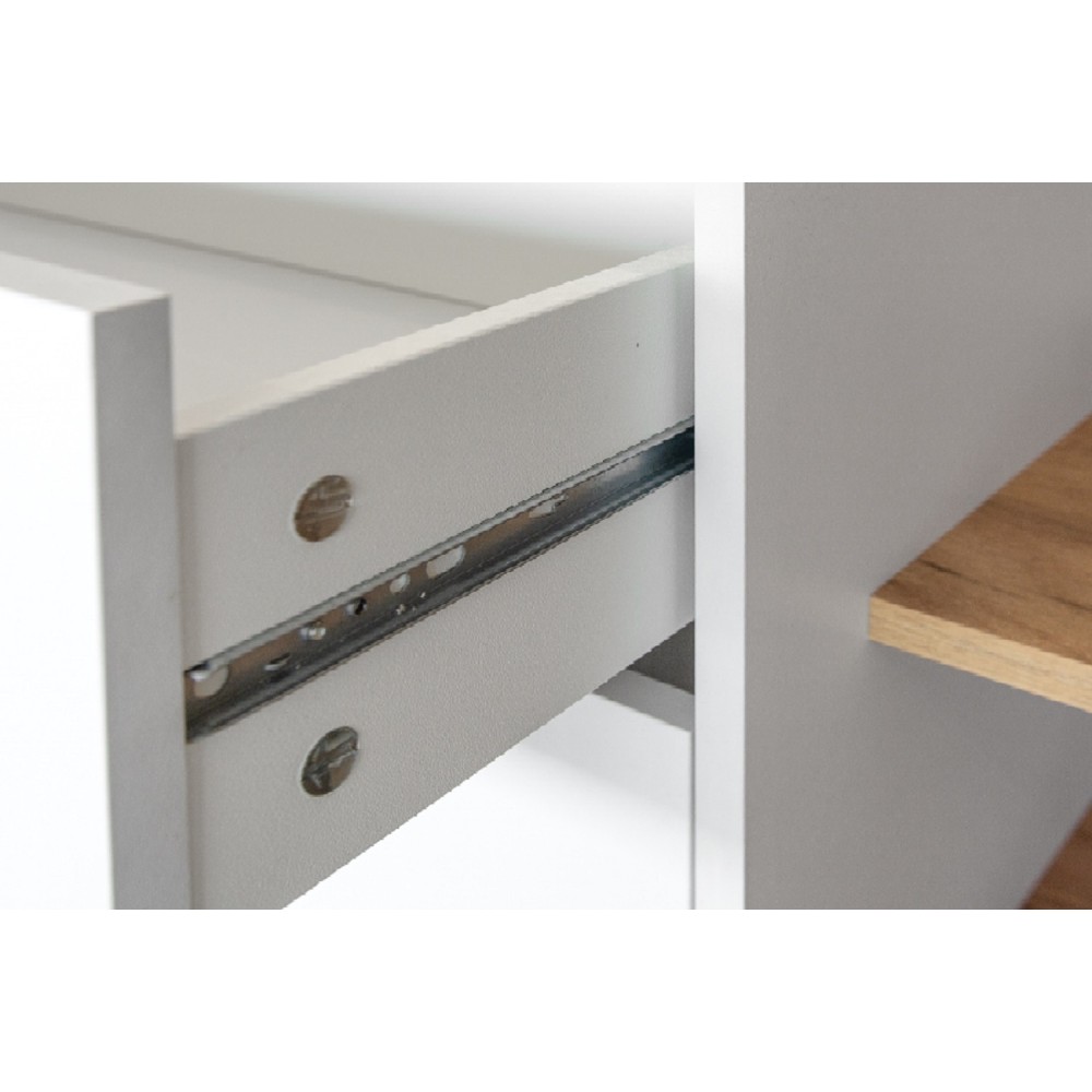 Тумба оснащена одним ящиком с шариковыми направляющими, что обеспечивает удобство использования. В комплекте идёт вся необходимая фурнитура, включая ручки из ABS-пластика.