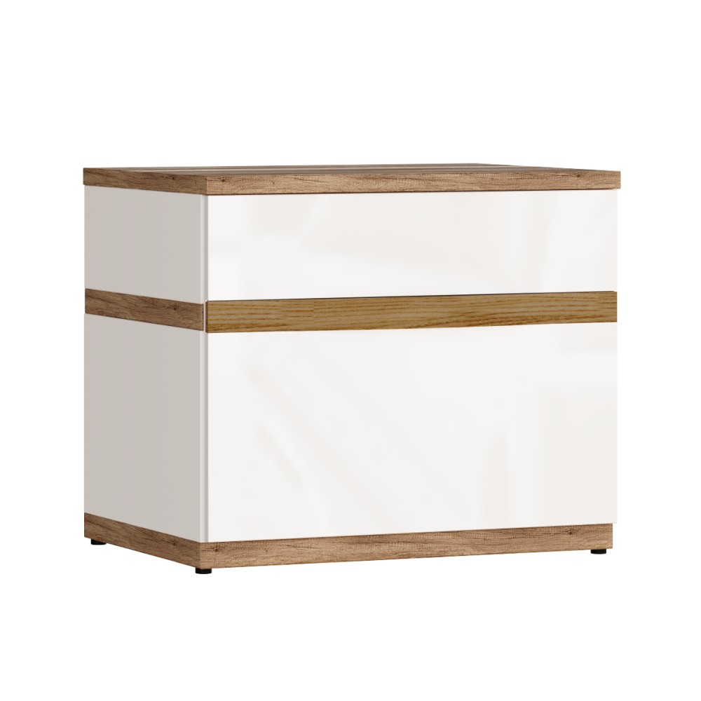 Стильная прикроватная тумба из модульной серии «Николь-Люкс» дополнит интерьер Вашей спальни. Современный дизайн тумбы в стиле минимализм гармонично сочетает в себе белый фасад с каркасом из дуба. Скрытые врезные ручки из массива дуба добавляют нотки экологичности и располагают к легкой уборке. Вместительные шкафчики позволят разместить все необходимые Вам вещи, которые должны быть всегда под рукой. Дверцы тумбы оснащены петлями с доводчиками плавного закрывания.