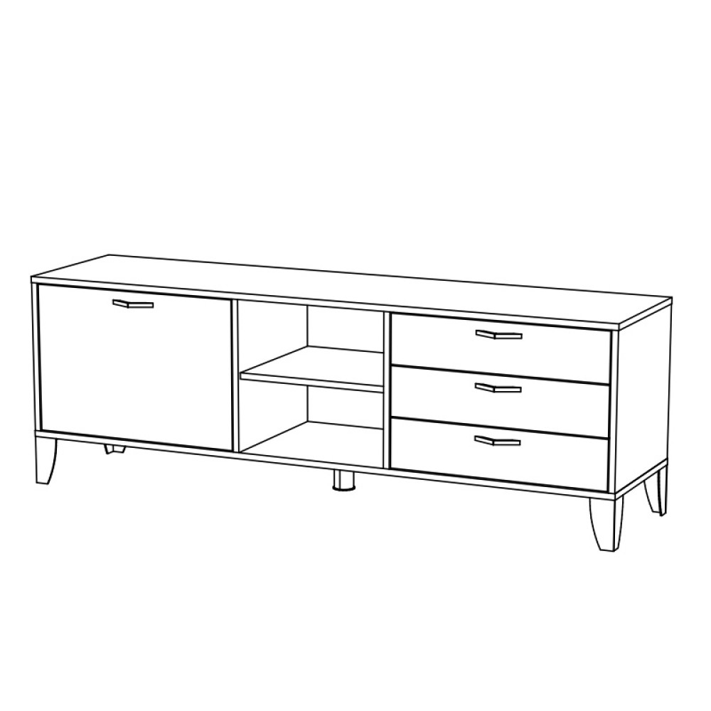 Минималистичный и лаконичный дизайн тумбы под телевизор Парус-9 будет гармонично смотреться в современном интерьере. Организуйте место хранения вещей, аксессуаров, книг с помощью трех выдвижных ящиков, открытых ниш и полок за глухой створкой.