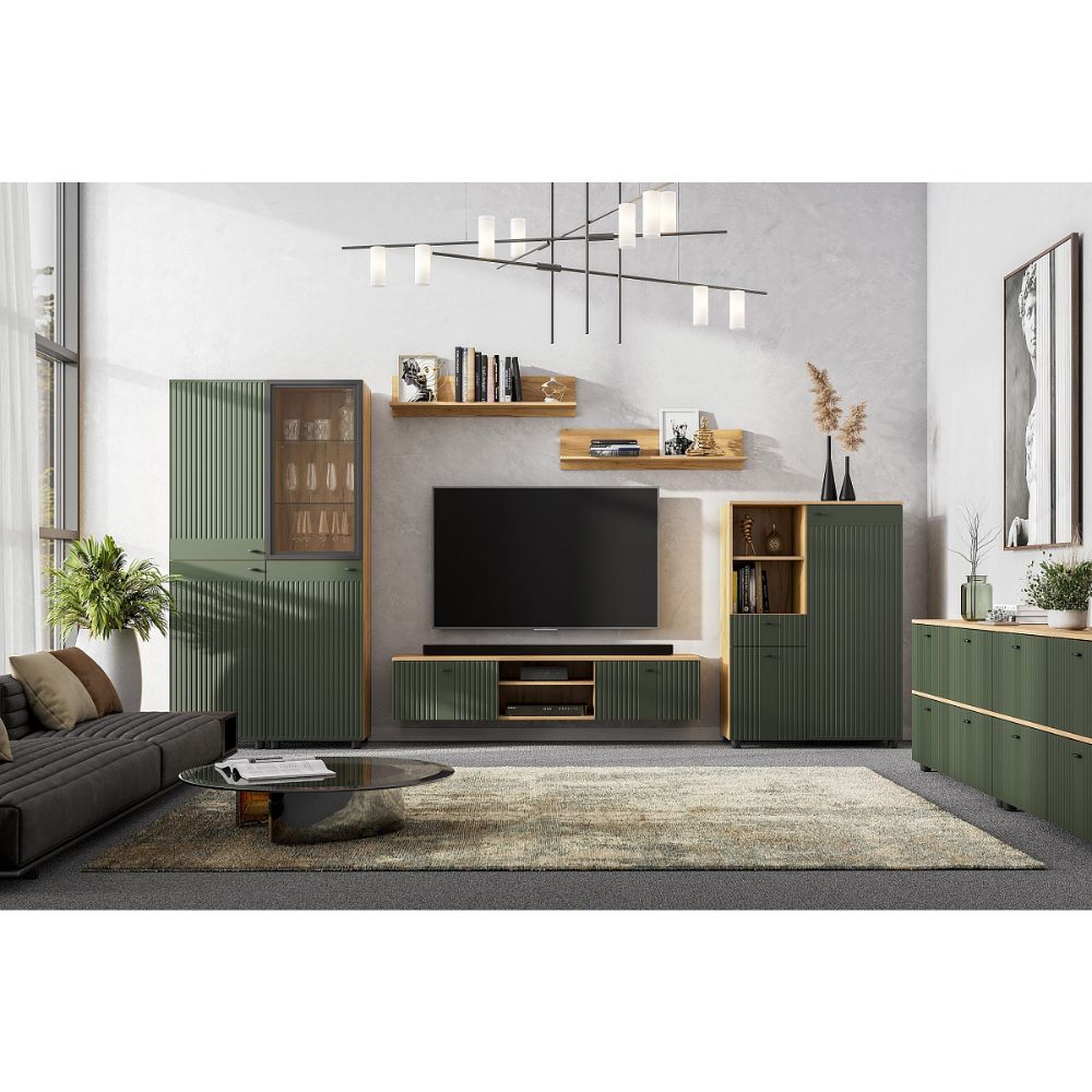 Модульная Система "Милан" Тумба телевидеоаппаратура со створками и нишей Дуб Золотой/Олива Софт