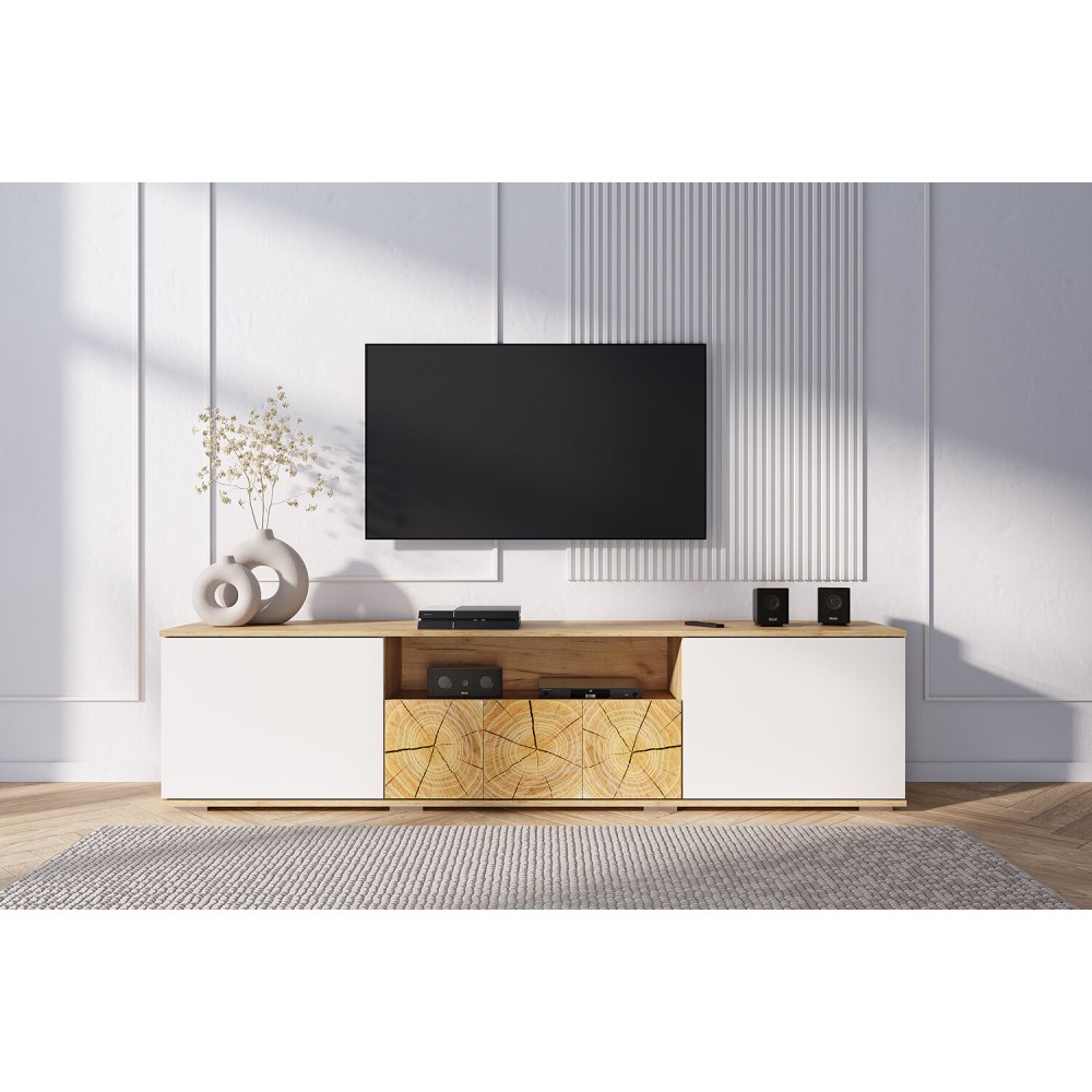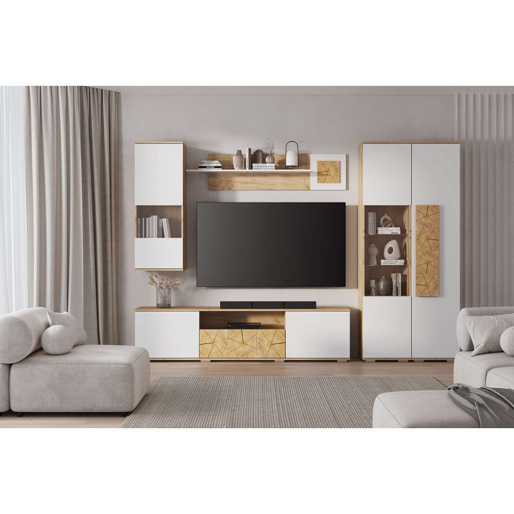 Коллекция Тиволи – это сочетание утонченного и стильного дизайна и функциональности. Оригинальные вставки с имитацией спила дерева создают яркий акцент на каждом предмете коллекции. Корпуса моделей в цвете дуб крафт золотой подчеркиваются белыми фасадами.
