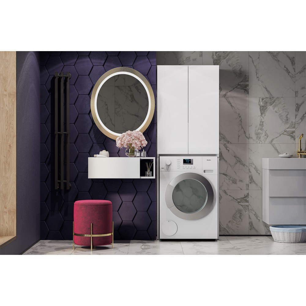 Пенал 640 с нишей для стиральной машины — это стильный и функциональный элемент интерьера. Он выполнен в белом цвете с текстурным дизайном, который придаёт изделию изысканность и элегантность. Пенал имеет две дверцы и одну нишу для стиральной машины, обеспечивая удобство использования и хранения вещей. Петли с механизмом плавного закрытия гарантируют надёжность и долговечность изделия.
