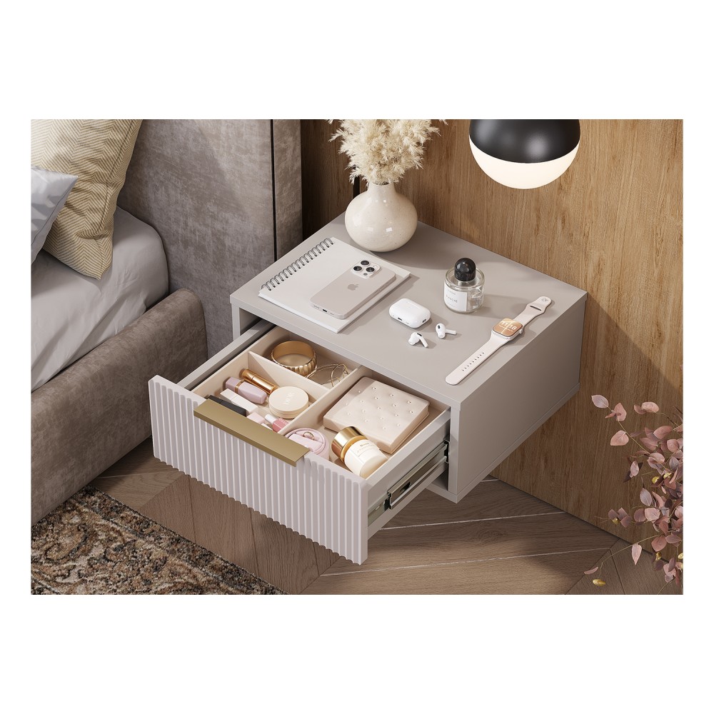 Тумба подвесная Пандора ТБ-16 - это элегантное и функциональное решение для современной спальни. С её стильным дизайном и практичными функциями, она прекрасно дополнит интерьер и создаст атмосферу уюта. Выдвижной ящик предоставит достаточно места для хранения мелких вещей — от книжек и очков до личных аксессуаров, что поможет поддержать порядок и организованность.