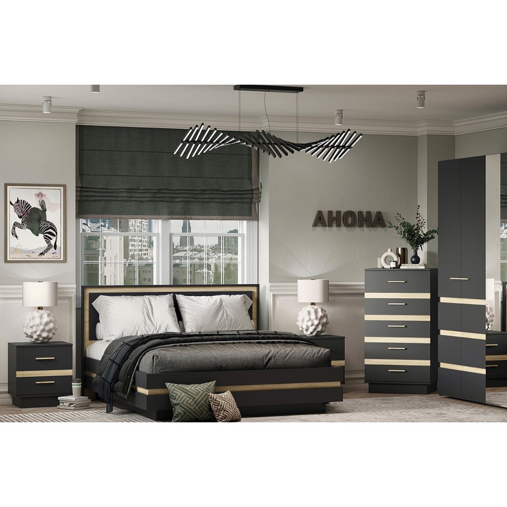 Прикроватная тумба из серии Анона с декоративными вставками дуб сонома.