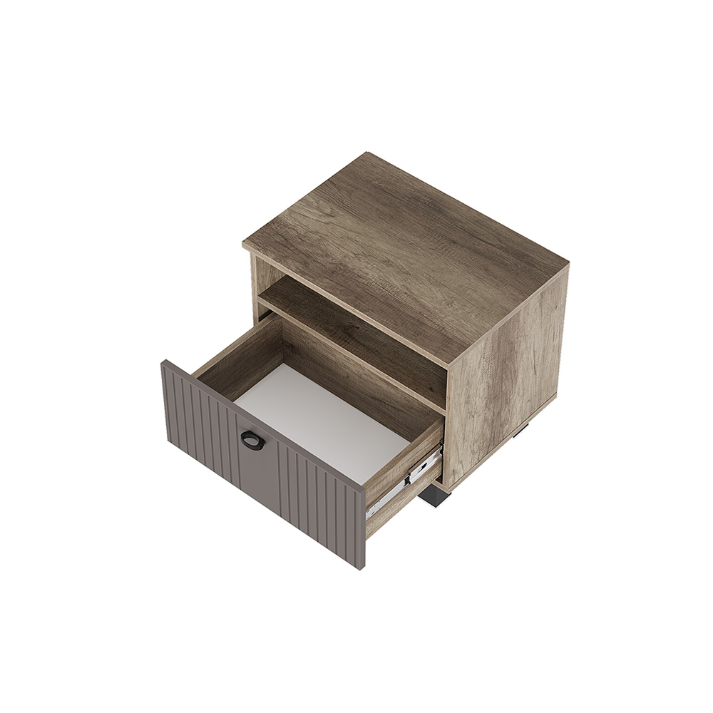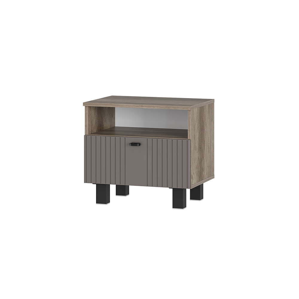 Тумба прикроватная Олива ТБ-14 — это элегантное и функциональное решение для любого интерьера. Коллекция представлена в тренировках пудровых оттенках. Фрезеровка на фасадах создает интересные текстурные контрасты и визуальные акценты. Кроме того, этот элемент декора также помогает скрыть мелкие загрязнения, что упрощает уход за мебелью. Черные металлические накладные ручки и петли с доводчиками обеспечивают удобство в использовании.