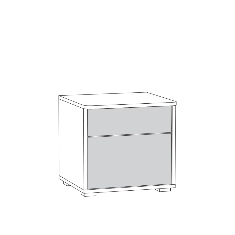 Тумба оснащена двумя выдвижными ящиками на шариковых направляющих, которые обеспечивают плавное и бесшумное движение. Верхний ящик имеет высоту 12,6 см, а нижний — 24 см, что позволяет удобно разместить разные вещи.