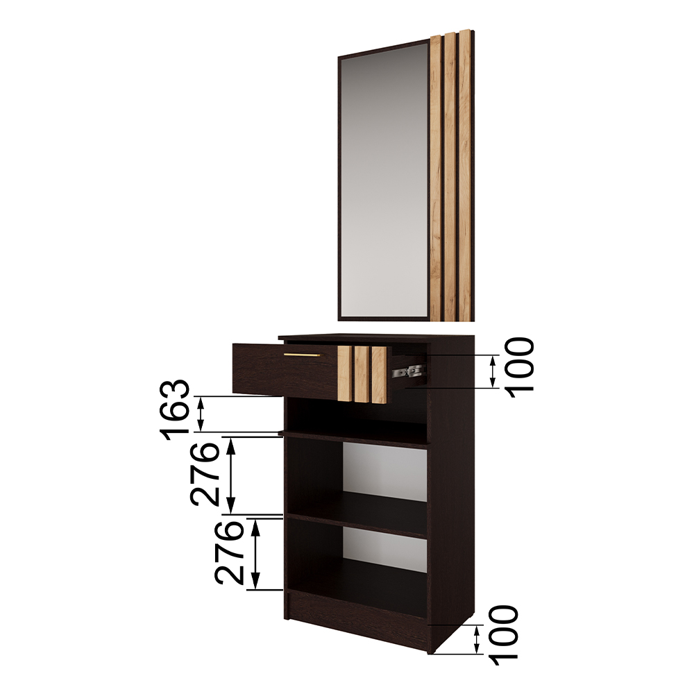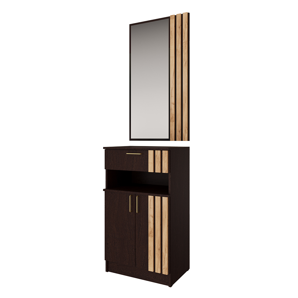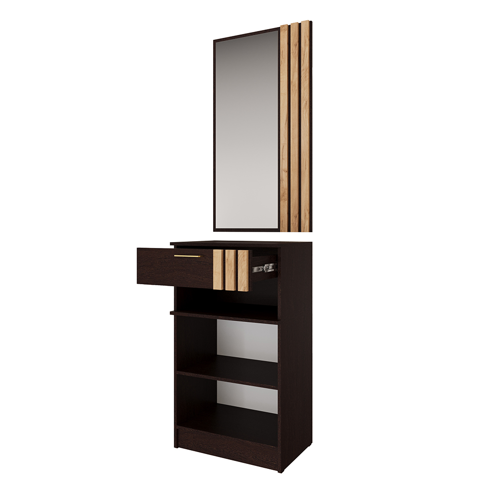 Тумба с зеркалом Кано КПТ — это универсальный элемент мебели, который идеально подойдет для прихожей. Удобный ящик на шариковых направляющих позволяет хранить мелкие предметы, такие как ключи, документы или аксессуары. Дополнительный отсек может быть использован для хранения обуви, сумок или других предметов, которые вы хотите держать под рукой. Зеркало не только визуально увеличивает пространство, но и позволит Вам быстро подготовиться перед выходом из дома.