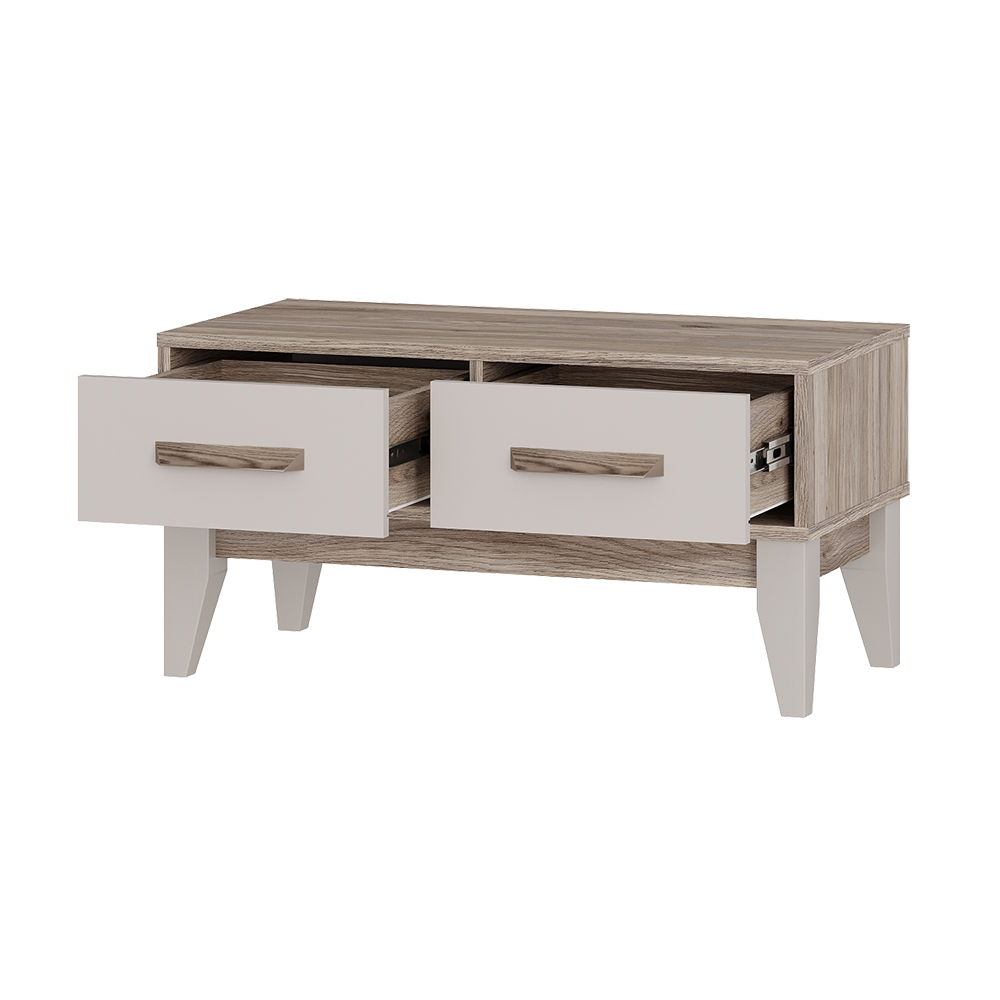 Компактная тумба Скандика шириной 802 мм подойдёт для телевизора и для игровых приставок. Необходимую технику также можно разместить в двух вместительных ящиках. Высота ножек оптимальна для уборки с помощью робота-пылесоса.