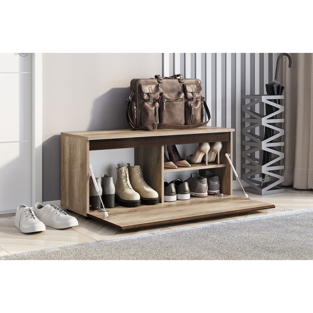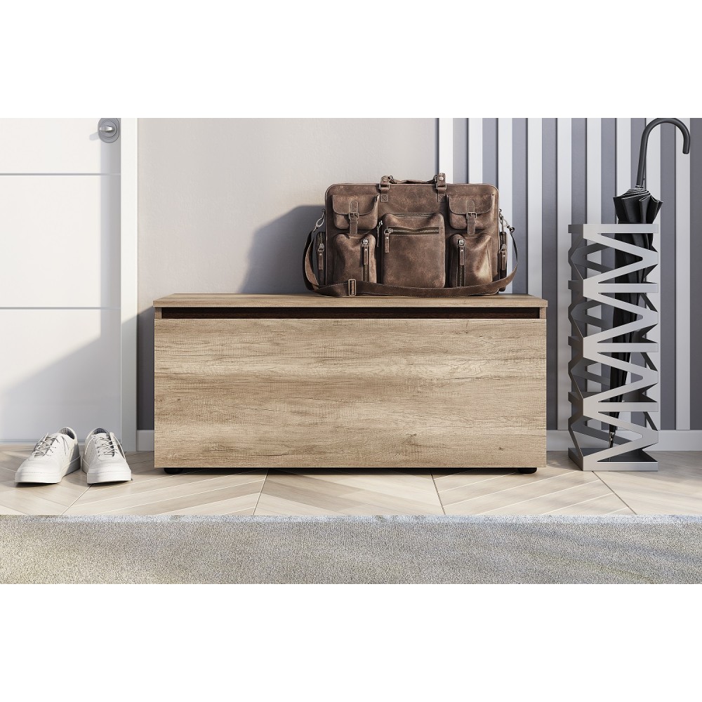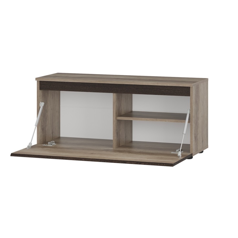 Тумба «Энигма» — лаконичное и функциональное решение для спальни. Пространство за откидной дверцей разделено на два отсека: одну большую и две компактных полки. Модель также подойдёт для гостиной или домашнего офиса.