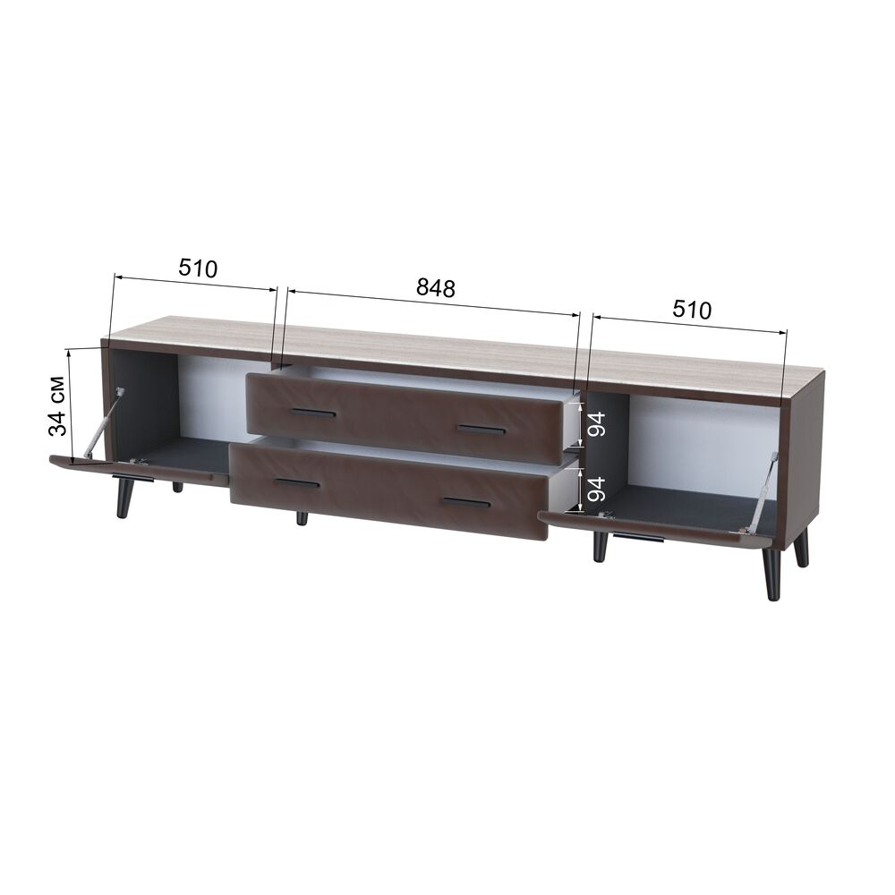 Тумба под телевизор Пай станет модным решением для гостиной. Это не только модуль по телеаппаратуру, это также зона для хранения книг, журналов и аксессуаров для ТВ.