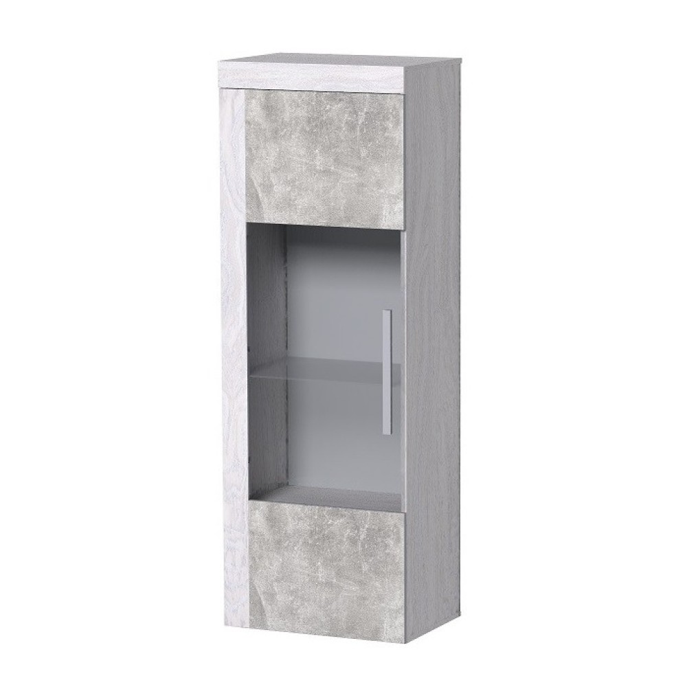 Если вы считаете, что хранить в гостиной посуду уже не модно, шкаф со стеклянной дверцей и стеклянными полками станет отличной витриной для дорогих и любимых фотографий и памятных вещиц. Стеклополки в обработке еврокромкой выдерживают до 10 кг каждая. Их можно декоративно подсветить с помощью светодиоднойBerlin 5 Подсветка(в комплекте не поставляется, приобретается отдельно). Фасад перенавешивается на левую и правую сторону. Серебристая стильная ручка из массива дерева и серое тонирование стекло фасада вносят смелые дизайнерские штрихи в восприятии актуальноого декора "под бетон".