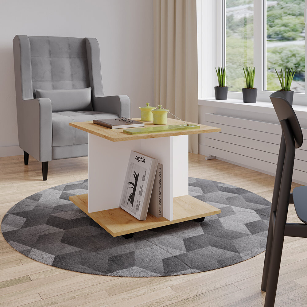 Журнальный стол Консул-10 - компактное решение для гостиной в современном стиле. Выполнен в универсальном белом декоре с эффектными древесными поверхностями. Рекомендуем использовать стол строго по назначению: не становиться и не садиться на него.