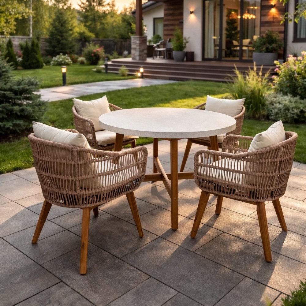 Превратите трапезу на свежем воздухе в изысканное событие с уникальным комплектом ELRONORA, который сочетает в себе стиль, уют и удобную комплектацию.