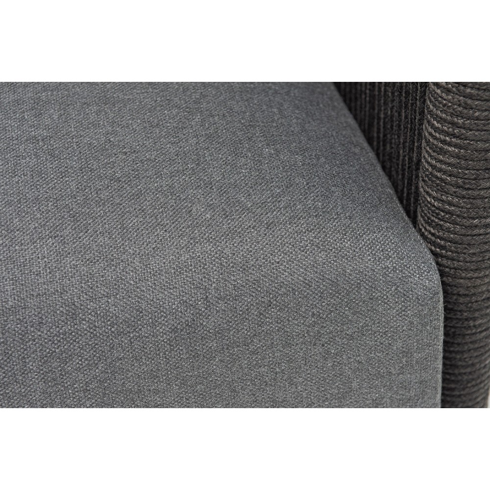 Каркас изготовлен из алюминия и покрыт порошковой краской темно-серого цвета (RAL7024), что повышает устойчивость к атмосферным воздействиям. Боковины каркаса вручную оплетены роупом — эластичными синтетическими лентами, выполненными из прочных полиэфирных волокон.