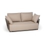 Диван имеет алюминиевый каркас, окрашенный порошковой краской в светло-серый (RAL7035) цвет. Боковины каркаса вручную оплетены роупом - эластичными синтетическими лентами, изготовленными из высокопрочных полиэфирных волокон. Цвет оплетки - серо-коричневый.